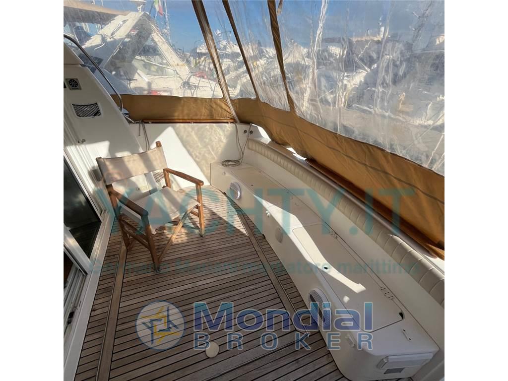 Angolo barra, Antenna radar, Batterie, Bussola, Comando motori elettronico, Doccia esterna, Doppia timoneria, Ecoscandaglio (Tridata), Elica di prua - bow thruster, Faro orientabile, Flap elettrici, Impianto antincendio, Passerella, Pilota automatico, Plotter con antenna GPS, Pompa di sentina automatica, Pompa di sentina elettrica, Porta ingresso, Pozzetto Teak, Presa 220V banchina, Presa acqua banchina, Radar, Radio VHF, Salpa Ancore Elettrico, Scaletta da bagno