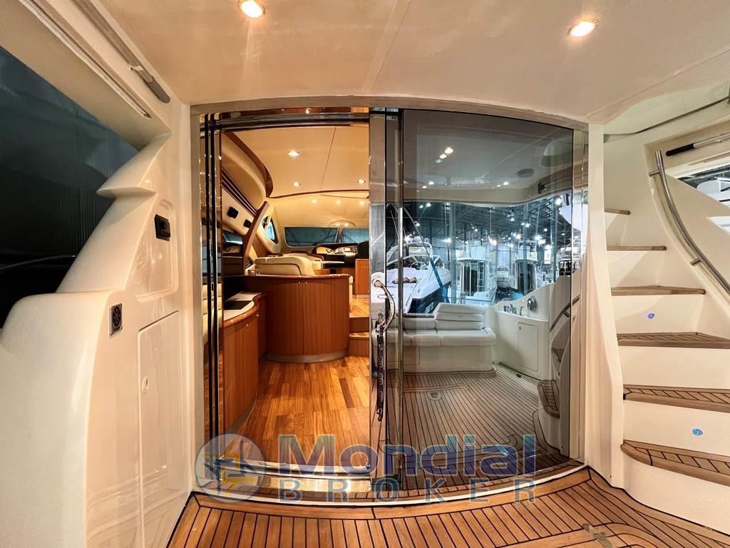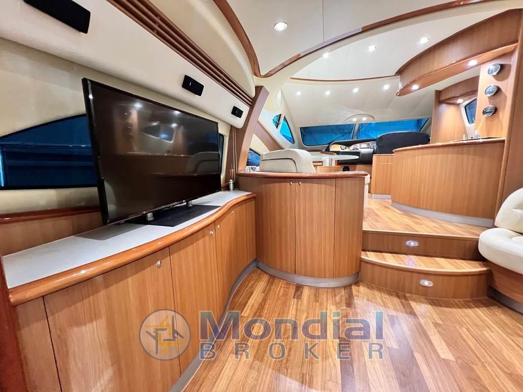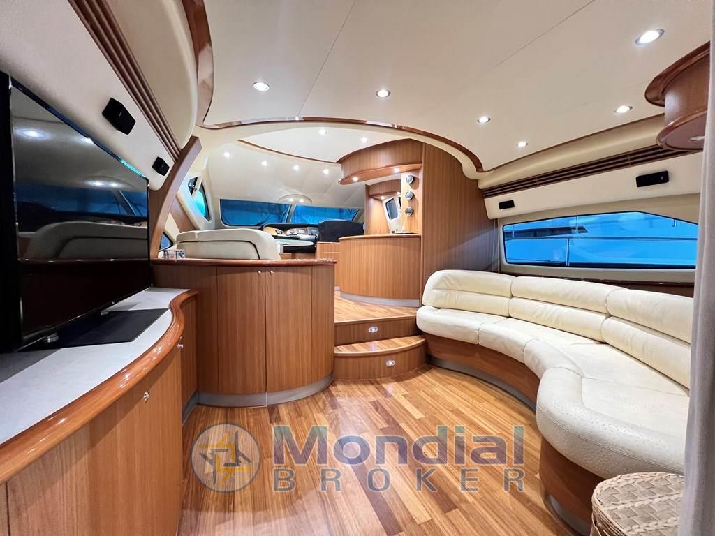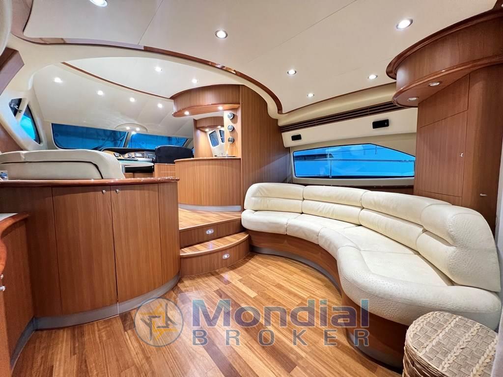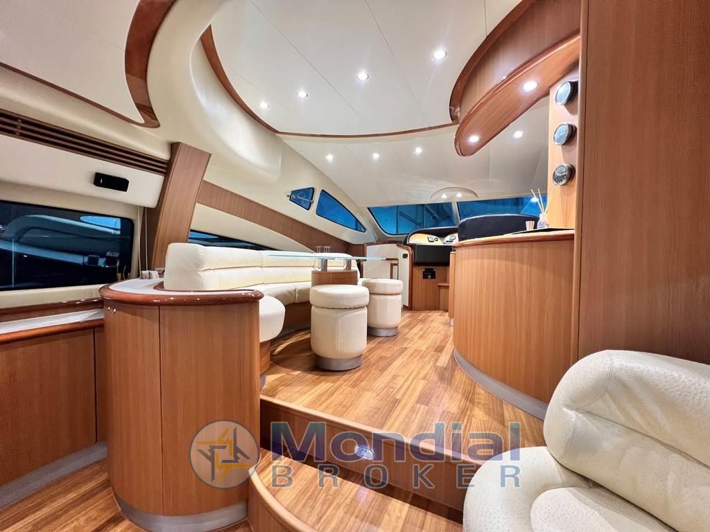 Lo splendido salone del ponte principale ospita il salotto, il soggiorno, la cucina e la timoneria in un unico grande vano open space in cui ogni zona è separata dalle altre con mobili bassi dalle forme tondeggianti.