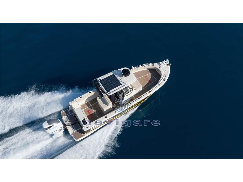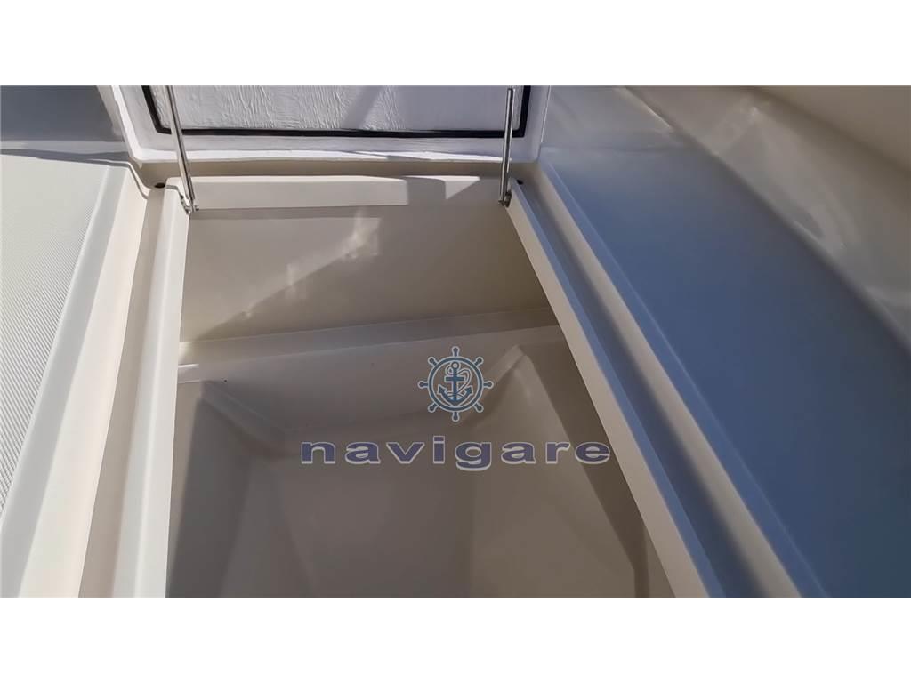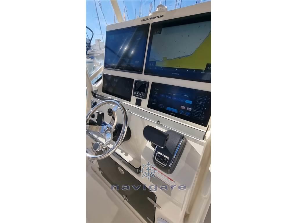 L’organizzazione di bordo è pensata per ottimizzare l’azione di pesca in un natante dai grandi contenuti. Un central consolle con coperta, accessori e linee d’acqua che sono state progettate con la consulenza del 33 volte campione del mondo di pesca Marco Volpi, secondo le necessità di un pescatore che ha bisogno di muoversi in modo agevole in barca, senza che le canne, il guadino o i pescatori sbattano ovunque, ma avendo comunque tutto l’occorrente a portata di mano e organizzato.