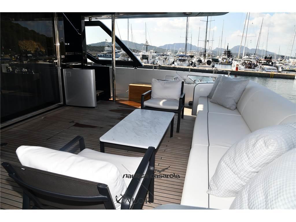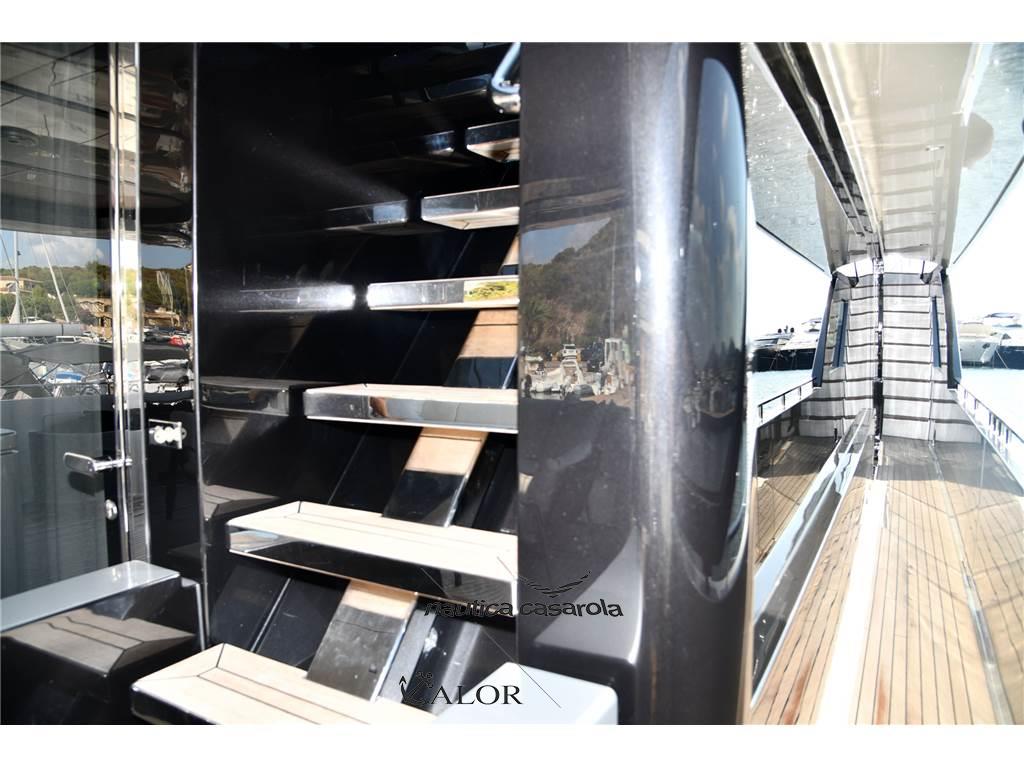 Allarme fumo/gas, Allarme motore, Allarme sentina, 2 Ancora (in acciaio da 105 KG piu 120 MT di catena), 2 Autoclave, Autogonfiabile, Auto-Trim, Bitte Abbattibili (SOLO IN PEDANA), Bocche di Lupa, Camminamenti laterali in teak, 3 Caricabatterie (automatico dedicato alle batterie motori e uno dedicato ai servizi), Colorazione speciale (shark grey), Doccia esterna, 2 Doppia timoneria (piu terza a poppa), Elica di poppa - stern thruster (Idraulica), Elica di prua - bow thruster (Idraulica), Fari fissi a poppa, Faro orientabile, Garage per tender, Impianto antincendio, Indicatori Flaps, Lavaggio catena, Luci di cortesia, Luci subacquee, Moto d'acqua, Passerella (a scomparsa idraulica), Pompa di sentina automatica, Pompa di sentina elettrica, Pompa di sentina manuale, Porta ingresso (Elettrica), Porta laterale (Elettrica), Pozzetto Teak, Presa 220V banchina, Presa acqua banchina, 3 Raddrizzatore (2 PER SERVIZI 1 PER MOTORI), 2 Salpa Ancore Elettrico, Scaletta da bagno (in carbonio), Selle per Tender (in garage), Sistema Depurazione acque nere, Stabilizzatori (Pinne idrauliche e Seakeeper interno), Tavolo pozzetto (differente), Tender (williams 445 diesel jet), Tientibene con cancelletti, Tromba, Winch Elettrico.
