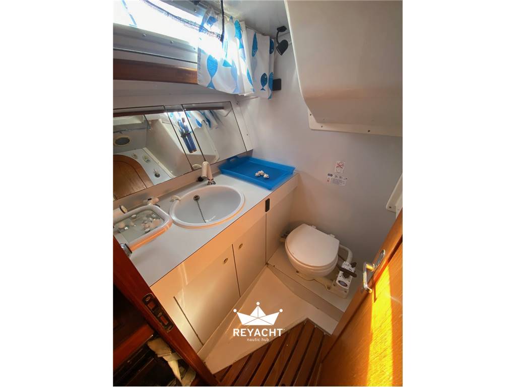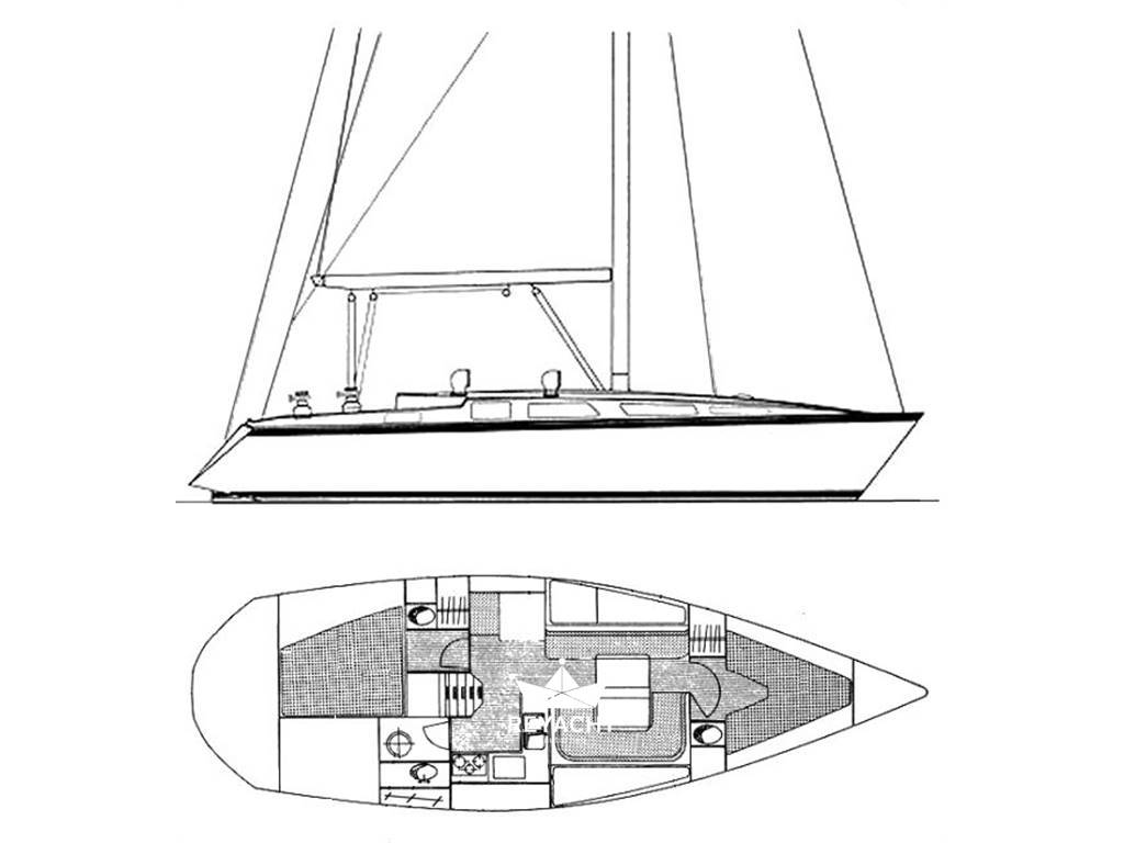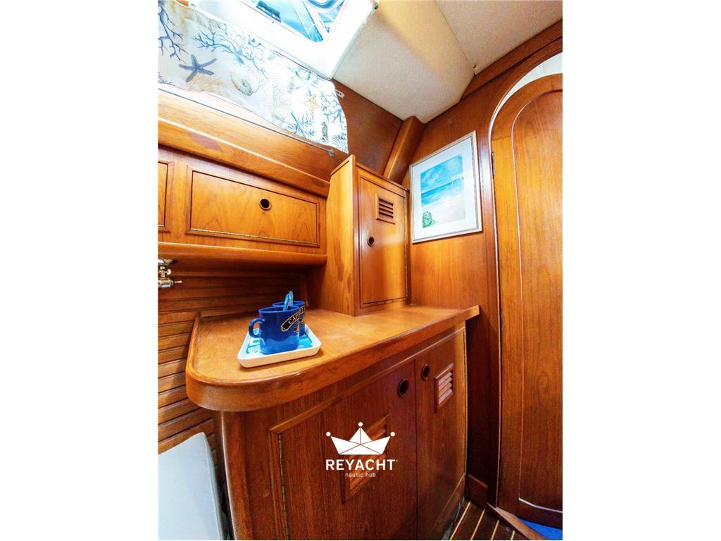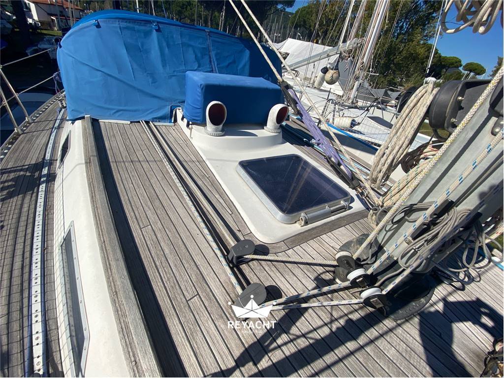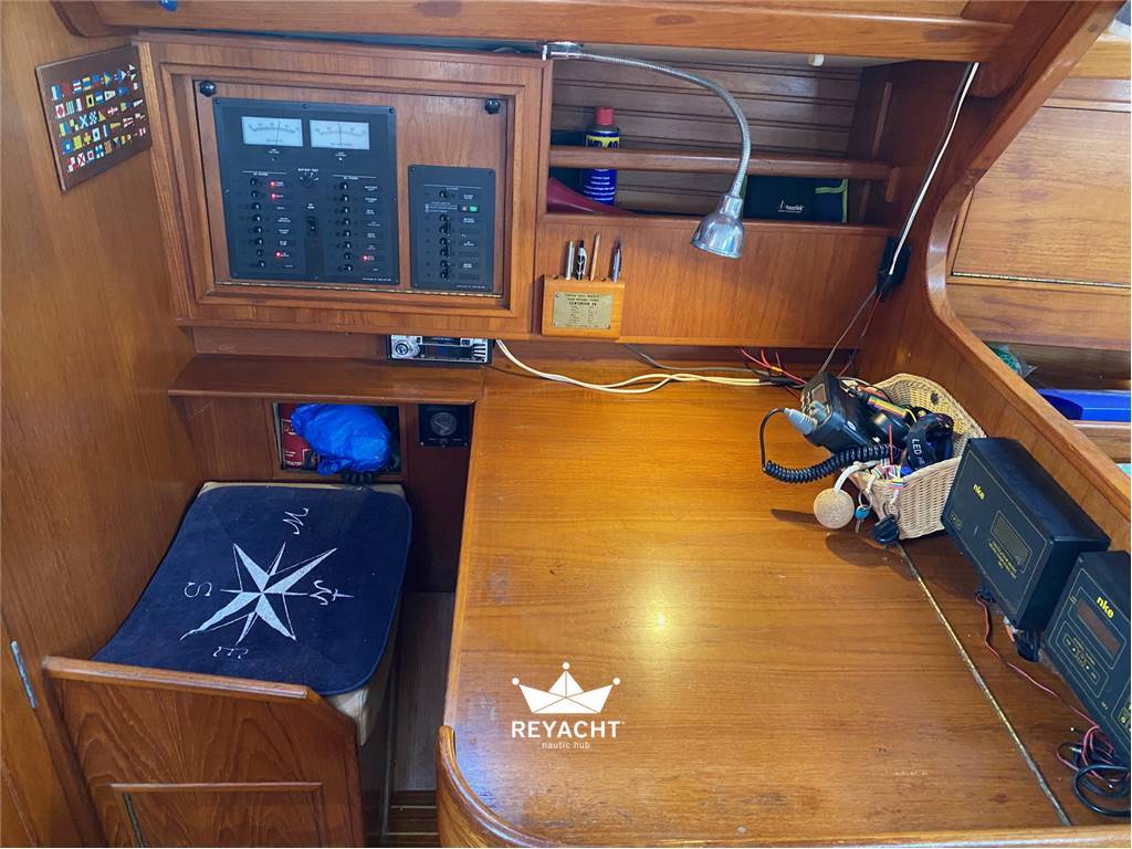 Coque en polyester et pont en teck massif, grand-voile neuve (2020), gréement en excellent état, Volvo Penta 2003T 45 HP entretenu avec soin (4260 h). Armement complet : pilote automatique (2020), GPS/traceur, VHF, loch-speedo, girouette-anémomètre Tacktick, winchs électriques, capote de roof, bimini et annexe motorisée.