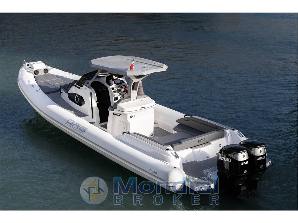 Il C35 può essere equipaggiato con doppia motorizzazione fuoribordo fino a 2x350 CV, offrendo prestazioni brillanti e una navigazione sicura anche con mare formato, grazie a una carena studiata per lunghe percorrenze.