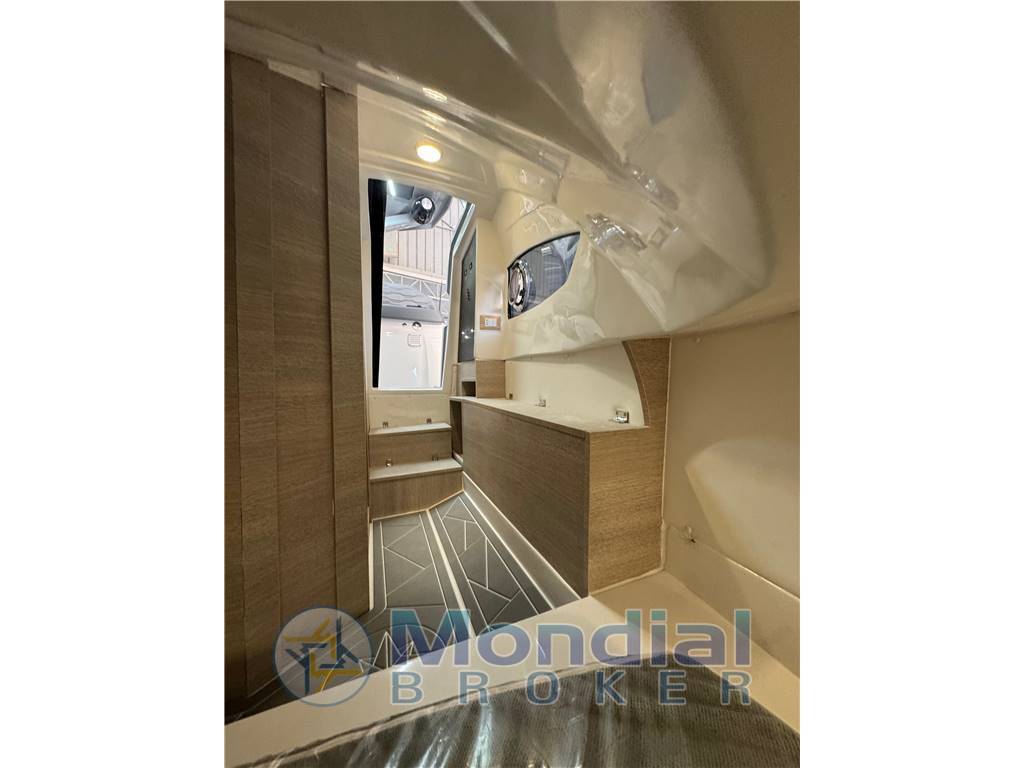 Di serie troviamo piano di calpestio e plancette in teak, oltre a cuscinerie con spugne a cellule chiuse, resistenti all’acqua e di facile manutenzione. Tra gli optional disponibili, il rollbar con tendalini parasole a prua e poppa completa un layout pensato per il massimo del relax. Non mancano due ampie aree prendisole, per garantire comfort a bordo a tutti gli ospiti.