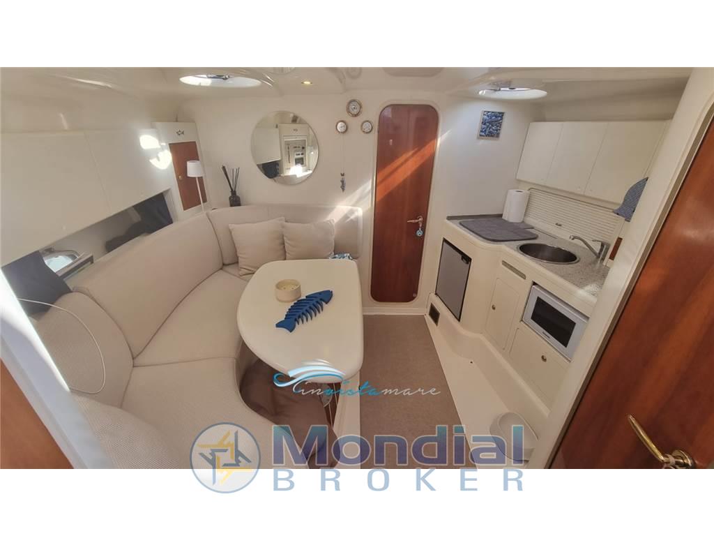 Acqua Calda, Aria condizionata (caldo/freddo), Boiler, Cappottina, Clima reversibile, Cucina (gas + piastra ad induzione x mob. esterno), Cuscineria di prua, Cuscineria Pozzetto, Dotazioni di sicurezza entro 12 miglia, Frigorifero esterno (Isotherm nuovo 2024), Frigorifero interno (Isotherm), Giubbetti di salvataggio, Impianto TV (con antenna nuovo 2024), Microonde, Prese interne 12v, Prese interne 220v, Stereo, Telo copriconsolle, Tendalino (completo nuovo 2023), 2 TV (smart tv 30 p/220v in armatoriale 2025, smart tv 24 p/220v cameretta 2024 + 12 v), WC marino elettrico, Zattera di salvataggio (scaduta), Mente Marine (regolazione flap automatici) nuovo 2024, volante timone nuovo 2024, imbarco acqua diretto nuovo acciaio 2025, tendalino di poppa ombreggiante nuovo 2024