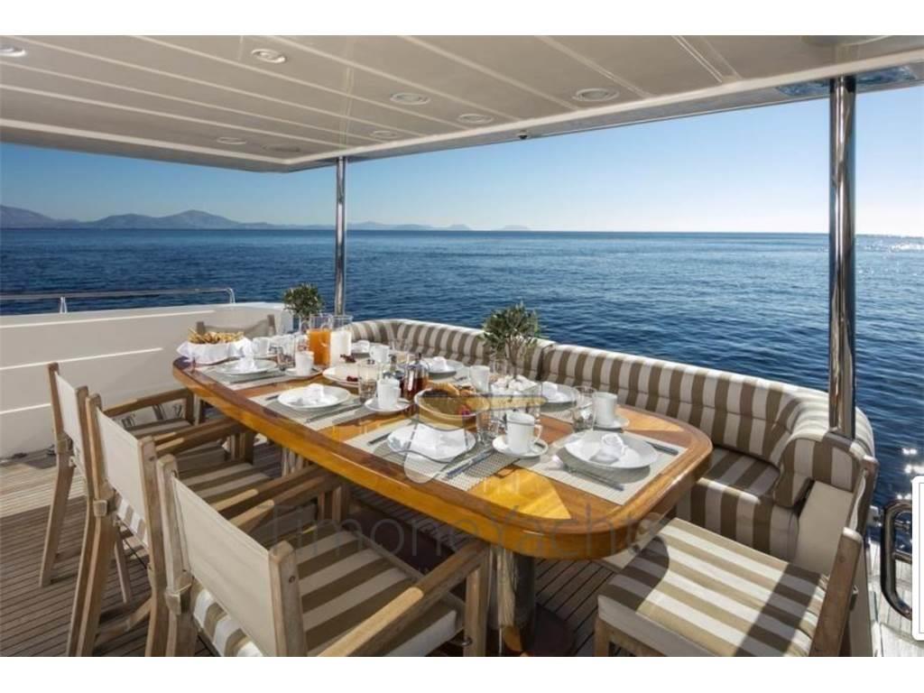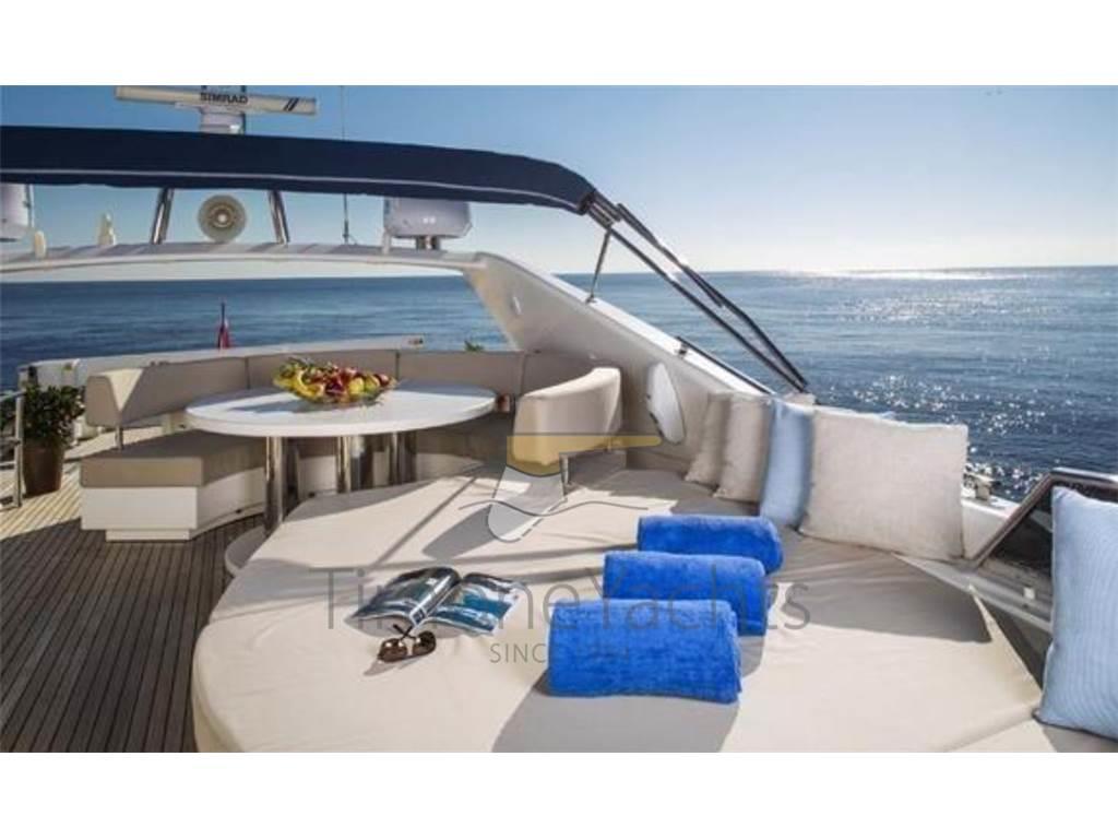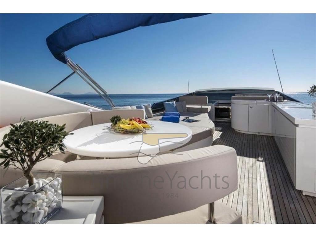 Ancora, Autogonfiabile, Doccia esterna, Doppia timoneria, Elica di poppa - stern thruster, Elica di prua - bow thruster, Flap idraulici, Gruette per tender su fly, Impianto antincendio, Passerella, Piattaforma, Pompa di sentina automatica, Pompa di sentina elettrica, Pompa di sentina manuale, Raddrizzatore, Salpa Ancore Elettrico, Scaletta da bagno, Tender (4.3 m Zar 60 hp).