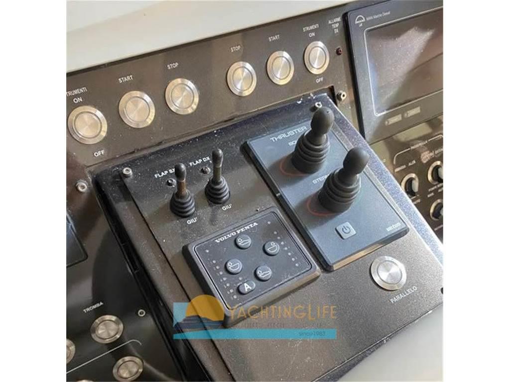 Allarme motore, Ancora, Autoclave, Batterie (Gel 2023), Bussola, 2 Caricabatterie, Colorazione speciale (Grigio Scuro metallizzato), Comando motori elettronico, Doccia esterna, Ecoscandaglio, Elica di poppa - stern thruster, Elica di prua - bow thruster, Flap elettrici, Hard top, Indicatori Flaps, Luci subacquee, Motore ausiliario, Passerella (Idraulica), Piattaforma, Pilota automatico (Raymarine), Plotter con antenna GPS (Garmin), Pompa di sentina automatica, Pompa di sentina elettrica, Porta ingresso, Pozzetto Teak, Presa 220V banchina, Radio VHF, Salpa Ancore Elettrico, Selle per Tender, Tavolo pozzetto, Tender, Tromba, Winch tonneggio di poppa