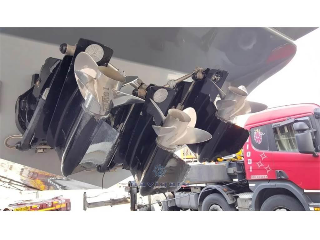 Allarme motore, Allarme sentina, Ancora, Angolo barra, Apertura Vano Motore Elettrica, Autoclave, Batterie, Bussola, Caricabatterie, Comando motori elettronico, Contametri catena, Doccia esterna, Ecoscandaglio, Elica di prua - bow thruster, Flap idraulici, Garage per tender, GPS, Indicatori Flaps, Luci di cortesia, Luci di navigazione, Luci subacquee, Piattaforma, Pilota automatico, Pompa di sentina automatica, Pompa di sentina elettrica, Pozzetto Teak, Presa 220V banchina, Radio VHF, Salpa Ancore Elettrico, Scaletta da bagno, Tavolo pozzetto, Tender, Tromba