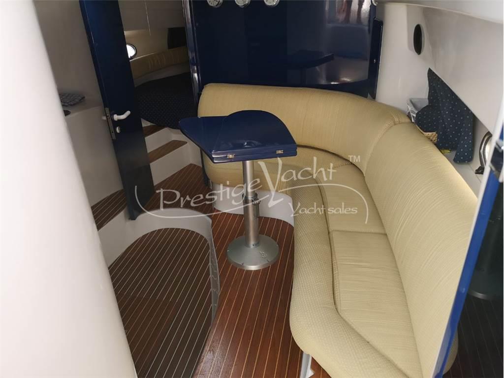 2002, immatricolazione varo e vendita 2003, sempre rimessata al coperto nei mesi invernali, nel 2020 effettuato i seguenti lavori: installato flaps automatici zip wake, sbarco motori e piedi per controllo generale con fatture officina Volvo Penta, verniciatura banda blue scafo, eliminazione teak spiaggetta e passavanti laterale prendisole poppa e ripristino antisdruciolo, placche plancia comandi nuove con installazione gps/plotter/eco garmin e flaps automatici zip wake, ottima opportunità. central agency.