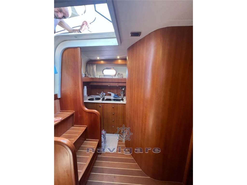 Altoparlanti, Aria condizionata, Boiler, Cappottina, Cucina, Cuscineria completa, Frigorifero esterno, Indicatore del serbatoio del carburante, Indicatore del Serbatoio dell’Acqua, Indicatore della pressione dell’olio nel motore, Indicatore della temperatura del motore, Pavimento interno in legno, Prese interne 12v, Prese interne 220v, Radio AM/FM, Stereo, WC marino elettrico, portellone ispezione IPS elettrico -