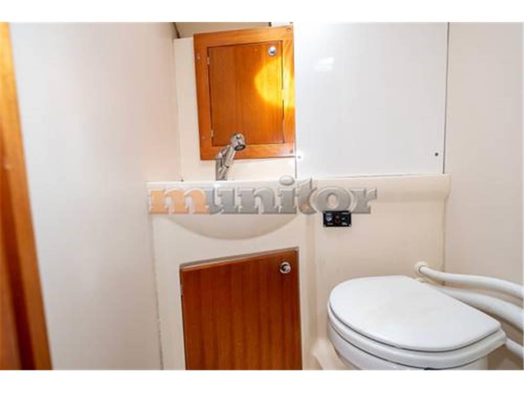 VHF, Ecoscandaglio, Riscaldamento, Aria condizionata, Pilota automatico, Impianto di acqua calda, Plotter GPS, Anemometro, Tettuccio paraspruzzi, Tettuccio bimini, Caricabatterie, Elica di prua, Bussola, Piattaforma da bagno, Scaletta da bagno, Batteria di servizio, Batteria motore, Pavimento in teak nel pozzetto, Teak a poppa, TV LCD