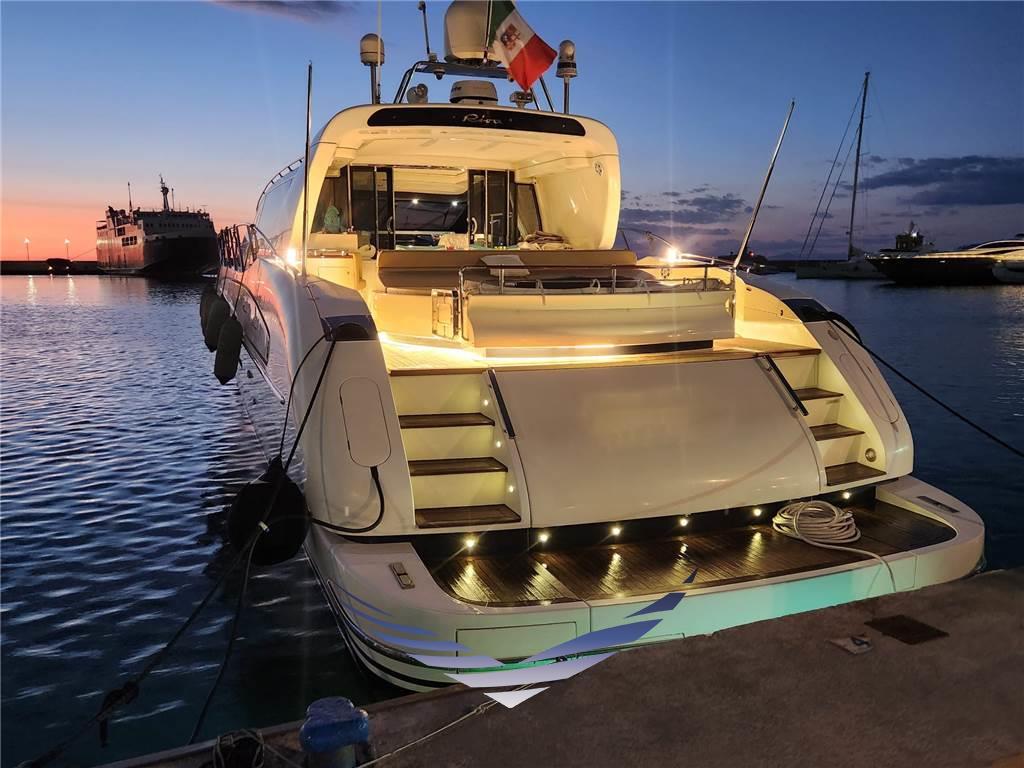 Allarme motore, Ancora (50 kg), Autogonfiabile, Doccia esterna (su apertura Garage Tender + doccetta laterale classica), Elica di poppa - stern thruster, Elica di prua - bow thruster, Garage per tender, 3 Luci subacquee (bianche), Passerella (idraulica Besenzoni), Pompa di sentina automatica, Pompa di sentina elettrica, Pozzetto Teak, Presa 220V banchina, Presa acqua banchina, Salpa Ancore Elettrico, Scaletta da bagno (Besenzoni), Tavolo pozzetto, Tender (Williams 325), Tromba, Winch.