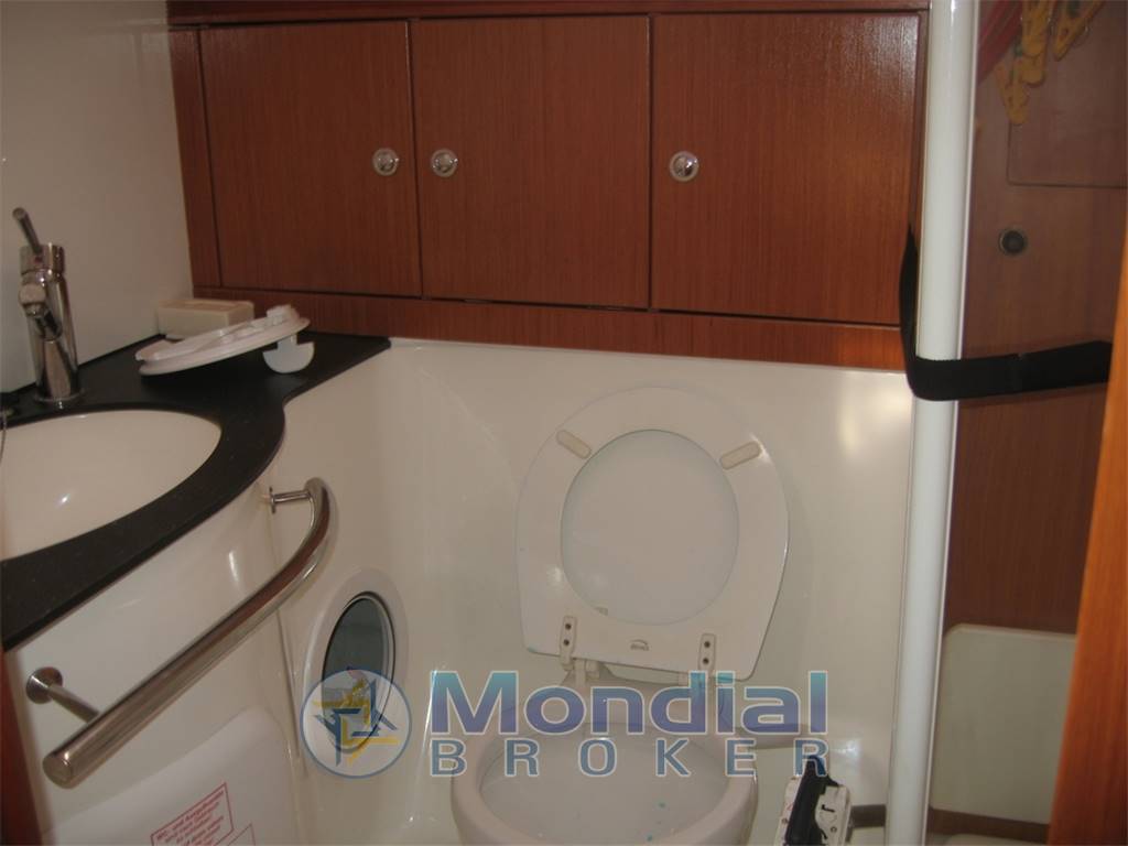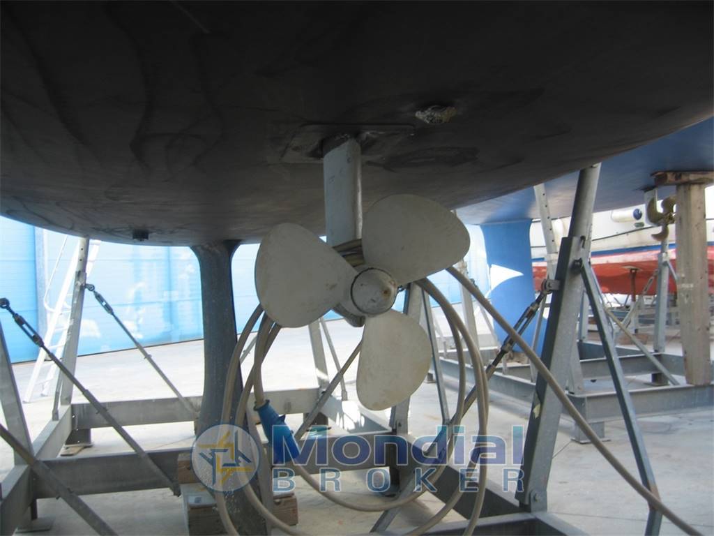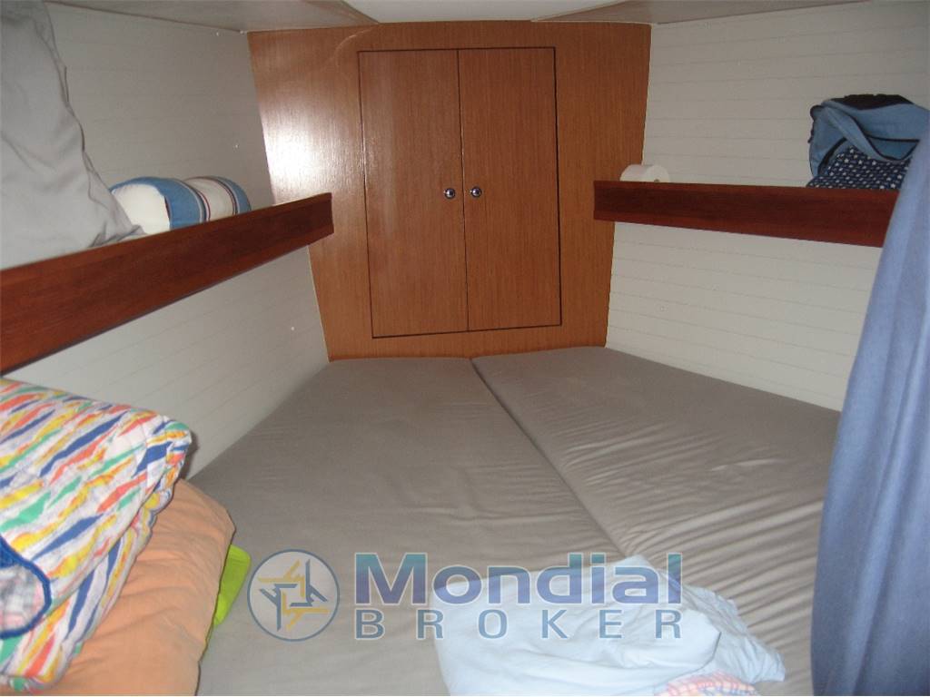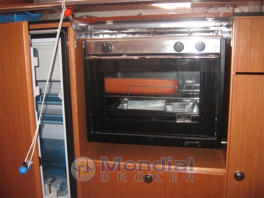 Dotazioni di bordo: cucina, forno, frigo, doccia interna, doccia esterna, riscaldamento, pozzetto in teak plancetta poppa, scaletta bagno, passerella, elixa di prua, prendisole a prua, ancora rispetto, pompa sentina ele.+ man.