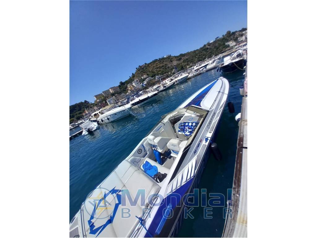 Dotazioni di bordo: telo copri-pozzetto, scafo aerografato, eliche lappate, alzamento motore elettrico con doppio pistone, sedute pilota e copilota regolabili elettricamente, ventilatori in cabina, estintore sala macchine.