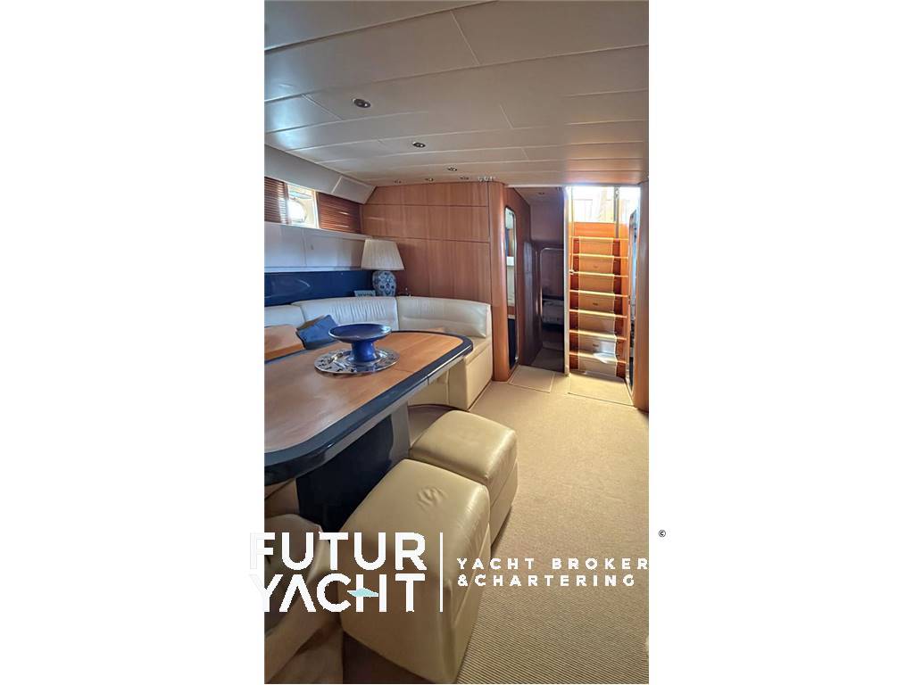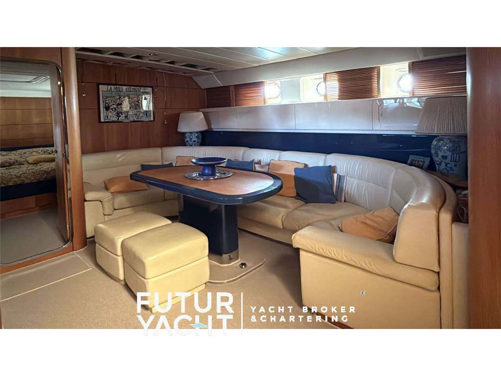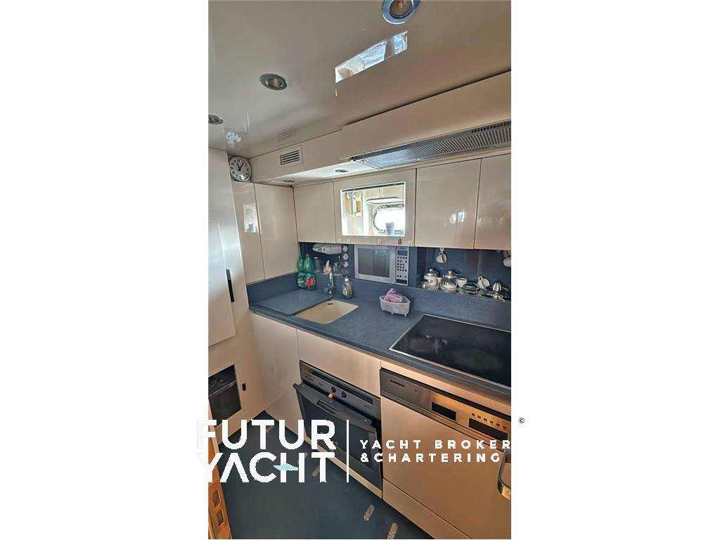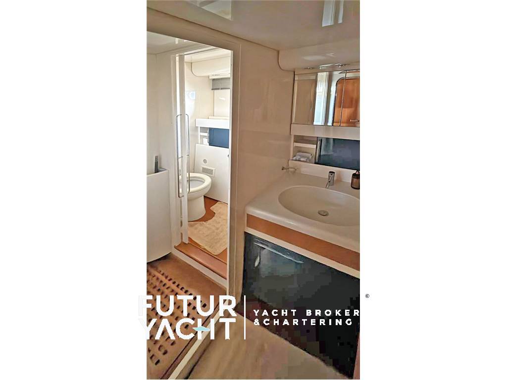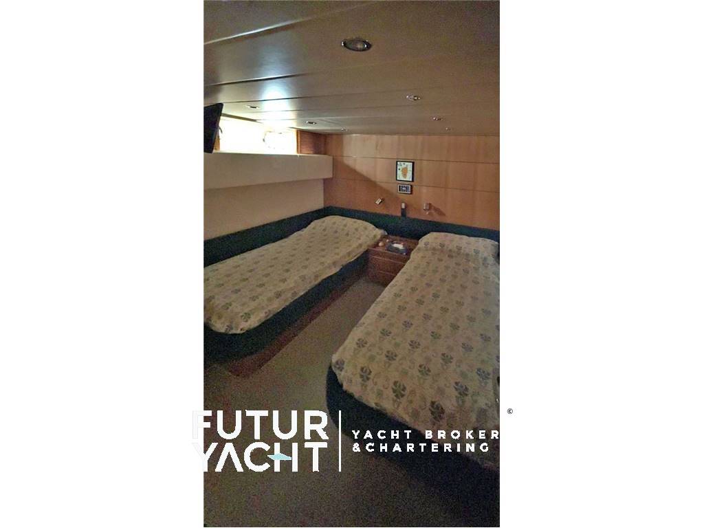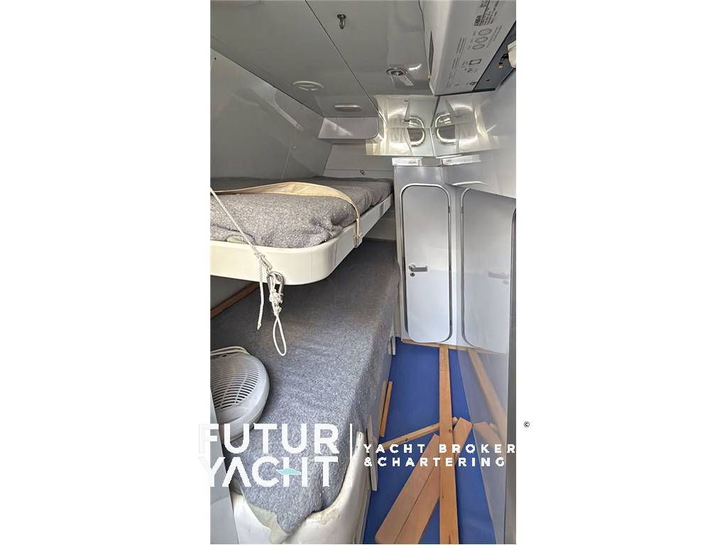 Cabina Matrimoniale italiana a prua con bagno dedicato, una Cabina Doppia con letti in piano e bagno dedicato una singola a centro barca con cabina armadio; bagno di servizio con ingresso dalla dinette, Cabina equipaggio con due letti a castello e toilette con accesso esterno. Barca internamente impeccabile, mobilia e tessuti perfetti