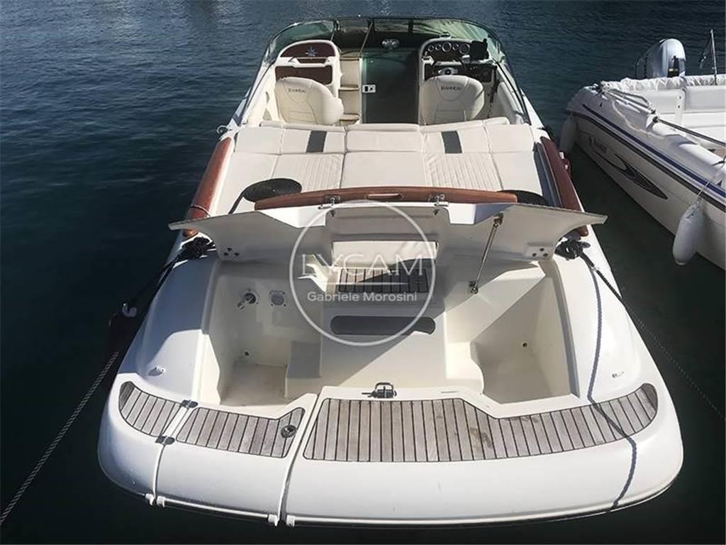 Luci di navigazione; Luce di fonda; Scaletta bagno; Doccetta pozzetto; Gancio sci d’acqua; Batterie; Stacca batterie; Caricabatterie; Pompa sentina elettrica; Telo copertura barca; Specchietto retrovisore; Tendalino pozzetto; Cuscinerie prendisole e pozzetto; Asta portabandiera; Pozzetto in teak; Tavolo pozzetto.