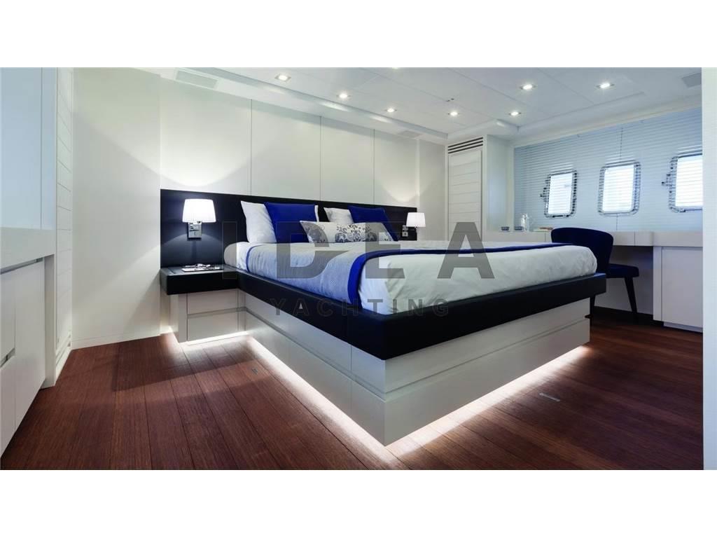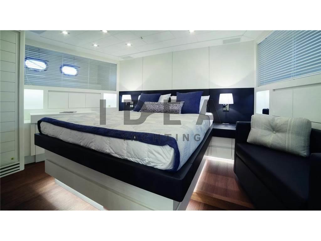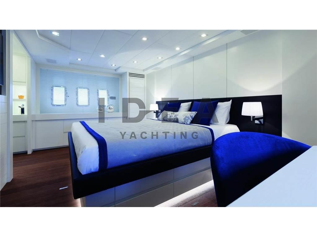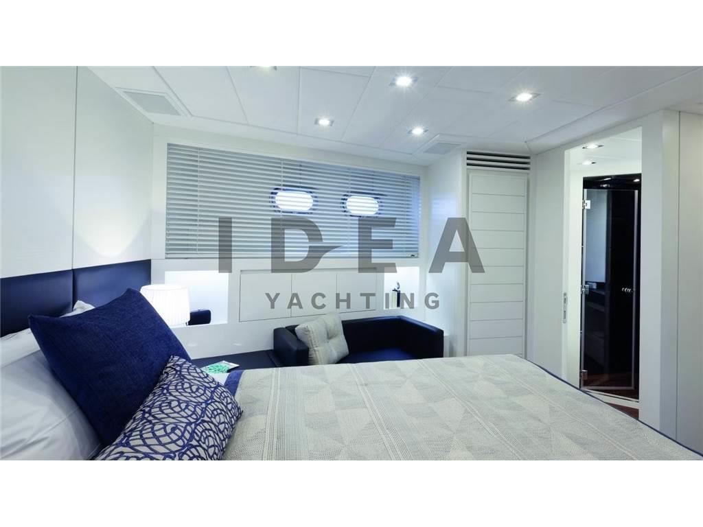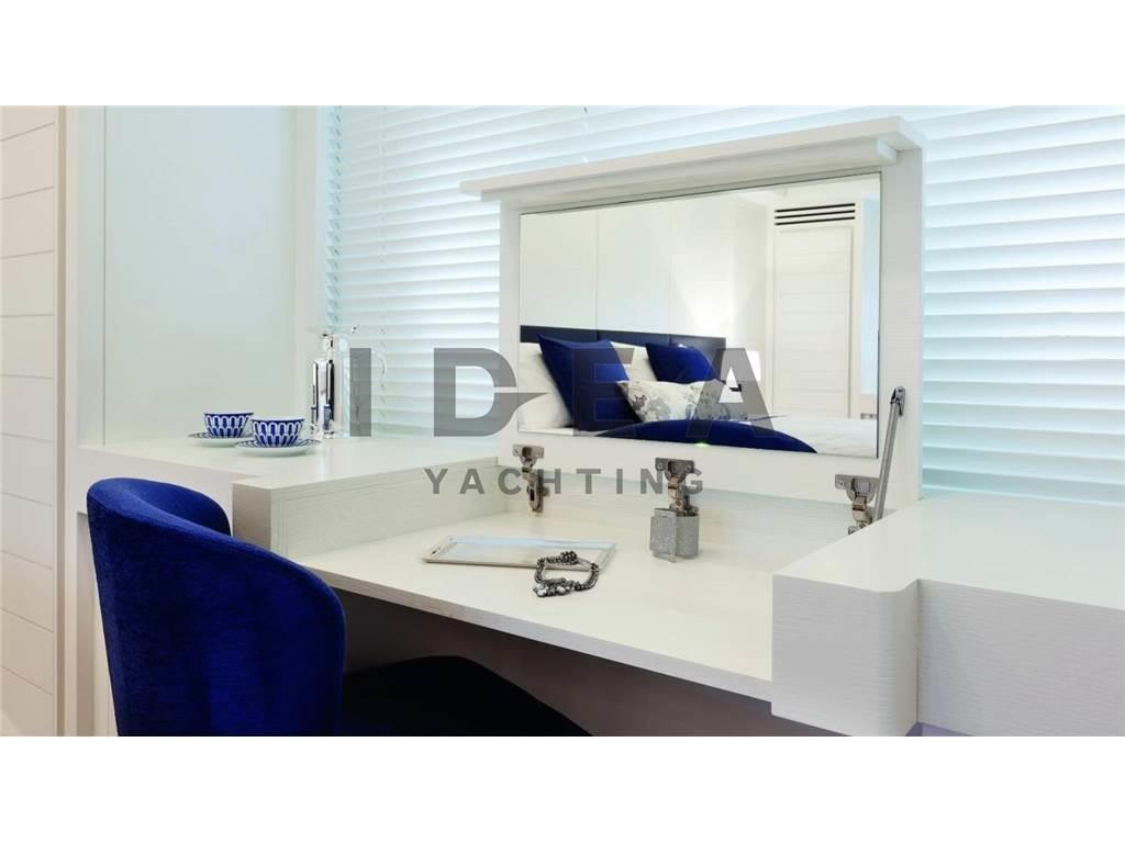 La sistemazione è per sette ospiti in tre eleganti cabine: una armatoriale a tutto baglio, una matrimoniale VIP e una doppia con Pullman, tutte con bagno privato. Gli alloggi dell'equipaggio ospitano tre membri in due cabine per un servizio efficiente. Gli spazi esterni sono ideali per intrattenere, con prendisole a poppa, cene all'aperto e lettini a prua con sistema audio integrato. Lo yacht perfetto per gli amanti della velocità che cercano design, lusso e prestazioni italiane.