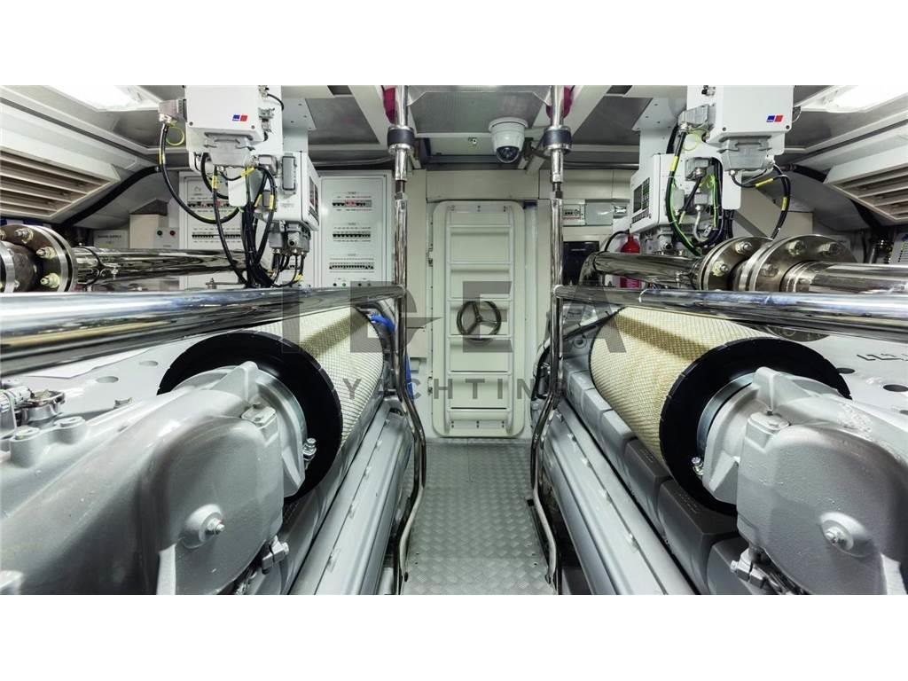 Parte della rinomata serie 80HT, combina prestazioni ed eleganza in vero stile Mangusta. Alimentato da due motori MTU da 2400 cavalli, naviga a 40 nodi e raggiunge i 45 nodi di velocità massima. Il suo scafo a V profonda modificato garantisce stabilità e comfort anche alle alte velocità.
