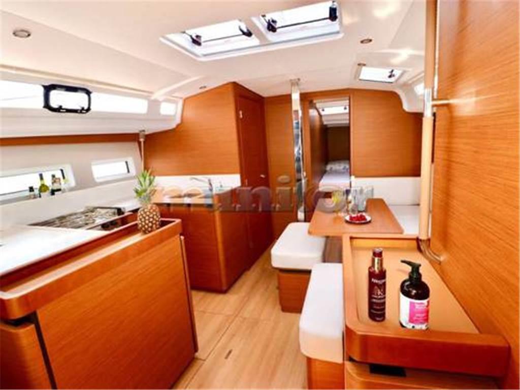 VHF, Ecoscandaglio, Aria condizionata, Riscaldamento, Pilota automatico, Doccia in pozzetto, Verricello elettrico, Impianto acqua calda, Serbatoio acque grigie, Plotter GPS, Anemometro, Sprayhood, Bimini top, Caricabatterie, Elica di prua, Impianto audio, Parabordi, Bussola, Piattaforma da bagno, Scaletta da bagno, Batteria di servizio, Batteria motore, Teak a poppa