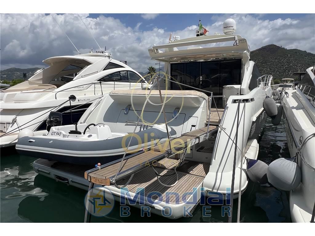 AIS, Allarme fumo/gas, Allarme motore, Allarme sentina, Ancora, Angolo barra, Antenna radar, Autoclave, Batterie, Bitte Abbattibili, Bussola, Camminamenti laterali in teak, Caricabatterie, Comando motori elettronico, Computer di bordo, Contametri catena, Contamiglia, Cronometro, Display, Doccia esterna, Ecoscandaglio, Elica di prua - bow thruster, Faro orientabile, Flap idraulici, Hard top, Impianto antincendio, Impianto Aria Compressa, Indicatori Flaps, Interfaccia, Joystick (ZF Joystick control), Lavaggio catena, Lavandino nel Pozzetto, Log, Luci di cortesia, Luci di navigazione, Luci subacquee, Passerella (Opacmare), Piattaforma, Pilota automatico (Raymarine EV-200 autopilot), Plotter (Raymarine E120 Chart Plotter), Pompa di sentina automatica, Pompa di sentina elettrica, Pompa di sentina manuale, Ponte in teak, Porta ingresso, Pozzetto Teak, Presa 220V banchina, Presa acqua banchina, Radar (Raymarine), Salpa Ancore Elettrico, Scaletta da bagno, Sedile Copilota, Sistema Depurazione acque nere, Tavolo pozzetto, Tender (Selva GT340 + Mercury 20hp), Tromba, Tuga in teak, Winch Elettrico, Winch tonneggio di poppa, Winch tonneggio di prua
