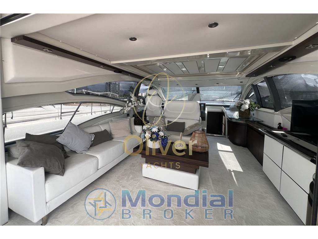 Gli interni di questa imbarcazione riflettono uno stile elegante e contemporaneo, con finiture di pregio e una distribuzione degli spazi studiata per offrire massimo comfort a bordo. Il salone sul ponte principale è ampio e luminoso, arredato con divani in pelle Etro e un tavolo estensibile/telescopico affiancato da un angolo bar completo, dove una smart TV Hisense a scomparsa e un impianto hi-fi creano un ambiente ideale per il relax o l’intrattenimento. La cucina, posizionata sottocoperta a dritta, è completamente attrezzata con elettrodomestici di qualità, tra cui forno digitale Panasonic, piano cottura a induzione, frigorifero e freezer a colonna, lavastoviglie integrata. La cabina armatoriale a tutto baglio a mezzanave è un vero e proprio appartamento privato sul mare, con letto matrimoniale, zona relax con due divani, cabina armadio, TV Philips e stereo Sony, oltre a bagno en-suite con box doccia separato. La cabina VIP di prua, con letti separati trasformabili in matrimoniale, dispone anch’essa di bagno privato e impianto audio. Completano la zona notte una cabina ospiti doppia con letti in piano e bagno con doccia, oltre alla cabina marinaio a poppa, con accesso indipendente e servizi riservati. L’attenzione ai dettagli, i materiali di qualità e la razionale suddivisione degli ambienti rendono questi interni ideali per lunghe permanenze a bordo. Ogni cabina è dotata di impianto stereo Sony, offrendo comfort personalizzato per ogni ospite. Una barca pensata per vivere il mare con classe, privacy e funzionalità.
