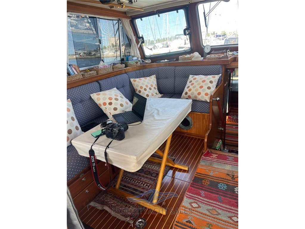 Il Menorquin 160 è uno yacht classico e robusto, lungo quasi 16 metri, che incarna lo spirito della nautica tradizionale spagnola con un tocco di eleganza mediterranea. Grazie al suo scafo a semidislocamento, assicura una navigazione stabile e confortevole anche in condizioni di mare impegnative, con una velocità di crociera di circa 13 nodi e una massima di 19 nodi. Questo motoryacht dispone di tre cabine spaziose con 6-8 posti letto, e due bagni, offrendo ampi spazi abitativi con interni luminosi e finiture di alta qualità in legno teak e iroko. Gli esterni offronto grande confort con un grande pozzetto in teak, un solarium incredibilmente spazioso a prua e ampi corridoi laterali, ideali per godersi il mare in totale relax. La strumentazione è completa e moderna, con sistemi di navigazione elettronici come GPS, pilota automatico, AIS, radar e autopilota con telecomando, mentre l'allestimento di bordo include climatizzazione, cucina attrezzata con forni e frigoriferi, boiler, docce esterne, bagno in teak birmano e doppi pannelli solari che alimentano 2 pacchi batterie (uno standard uno al litio). È la barca perfetta per crociere mediterranee di lunga durata, garantendo un elevatissimo comfort, stile classico e affidabilità.