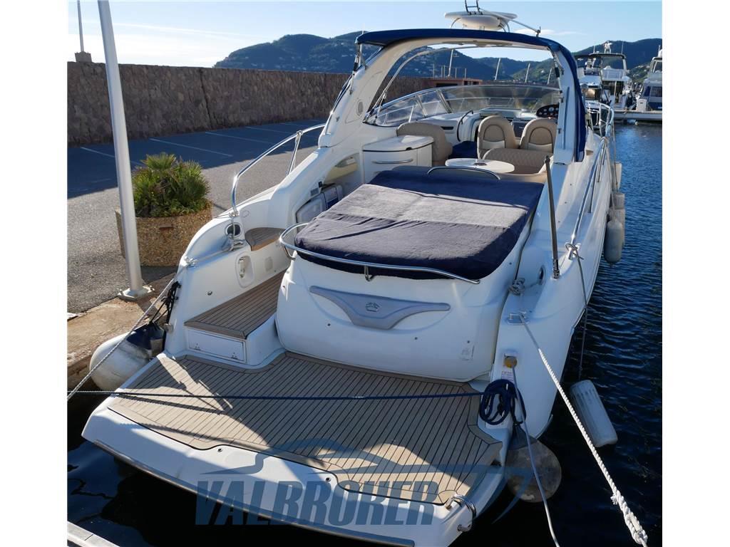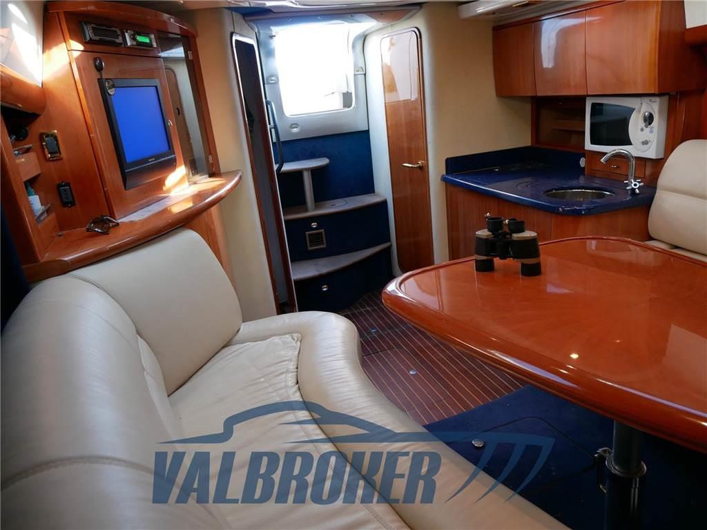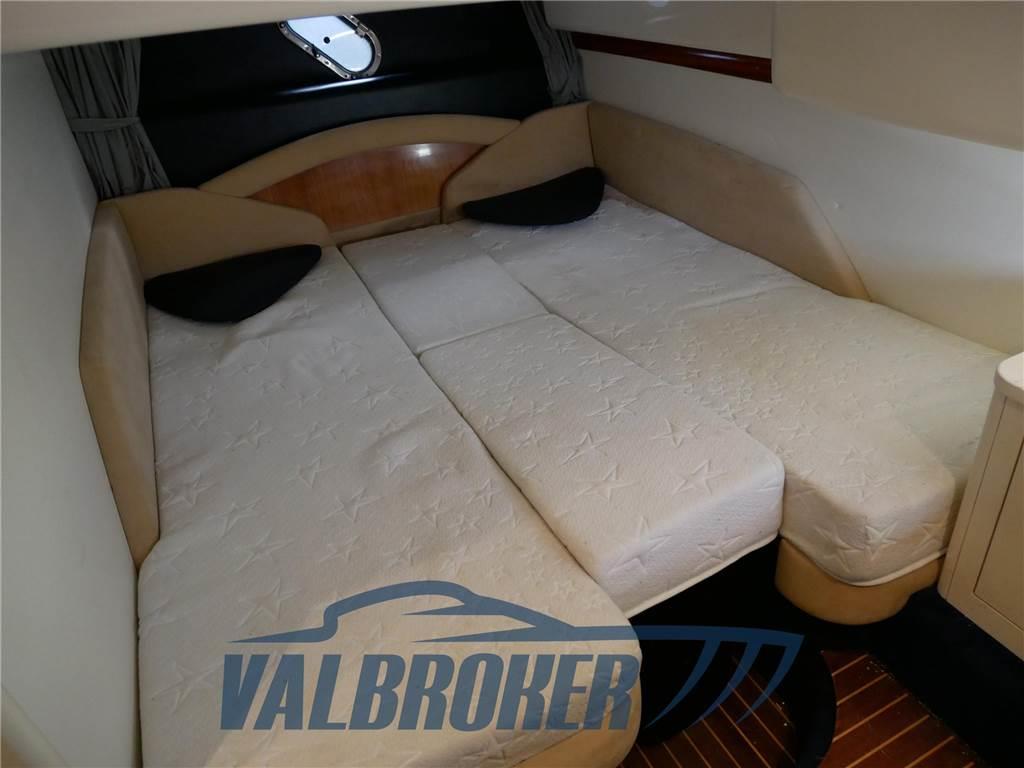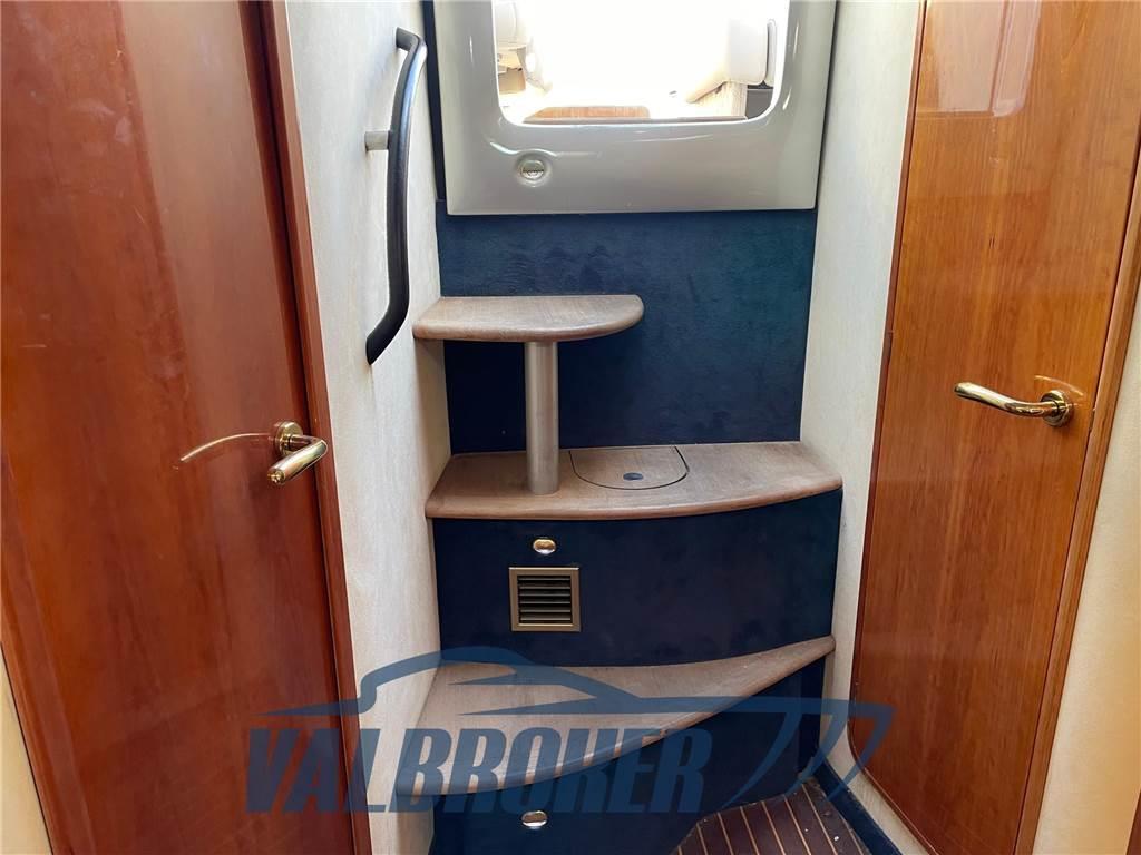 Sottocoperta si trova una spaziosa cabina di poppa matrimoniale una dinette trasformabile e un bagno con doccia. Full optional: aria condizionata caldo/freddo, pilota automatico, elica di prua, garage per tender, GPS. Teak sintetico che non richiedere manutenzione.