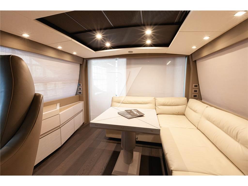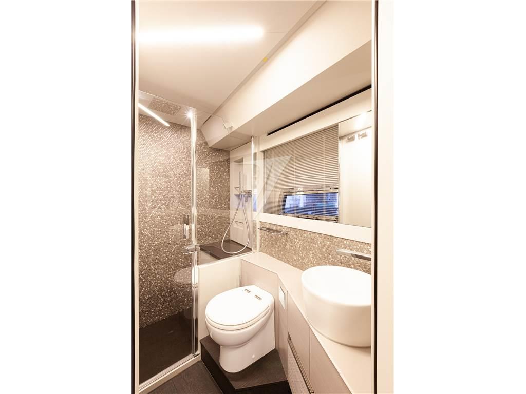 Altoparlanti, Aria condizionata (Super Tropic 90.000 BTU), Barometro, BBQ/ Grill (in pozzetto 220V), Boetta fumogena, Boiler, Carte nautiche, Cassaforte, Cassetta di pronto soccorso, Cinture di salvataggio, Collegamento internet, Congelatore, Controllo Domotica, Cucina, Cuscineria completa, Cuscineria di poppa, Cuscineria di prua, Cuscineria Pozzetto, Digitale Terrestre, Dimmer per Luci, Dissalatore (Idromar 130 l/h), Dotazioni di sicurezza oltre 50 miglia, DVD, Fornello, Forno, Frigorifero interno, Home Theater, ICE Maker, Impianto acque nere, Impianto TV (Apple TV in salone e cabina armatore), Inverter, Lavasciuga, Meccanismo saliscendi per TV, Oscuranti, Pavimento interno in legno, Prese interne 12v, Prese interne 220v, Radio AM/FM, Riscaldamento, Serbatoio Acque Nere, Stereo, Telecamera, Teli copri finestra, Tenda Elettrica, Tendalino, 4 TV (24" - 43" - 65" - 49"), WC marino elettrico, Zattera di salvataggio, Full optional.