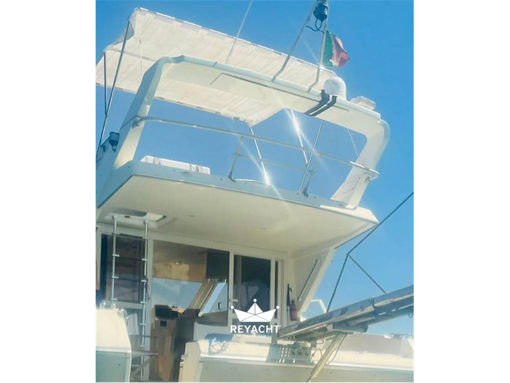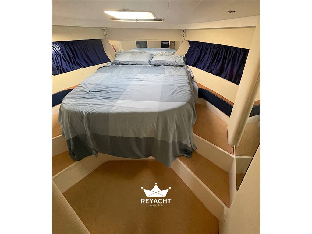 Descrizione esterna: partendo da poppa ampia plancetta con scaletta bagno con sella per tender compreso di fuoribordo,dotato passerella idraulica come tender lift.Pozzetto ampio con tavolo e sedie smontabili ,con divanetti perimetrali con teak rinnovato nel 2021. Scaletta per raggiungere uil flybridge lungo almeno 5 metri con comandi guida sdoppiati con doppio divanetto e cuscineria prendisole e bimini di copertura completa richiudebile.Dalpozzetto partono larghi passavanti per raggiungere la coperta con nuove cuscinerie 4 posti nel prendisole fino alla delfineria con verricello elettricoe tientibene di grande sicurezza.la motorizzazione revisionata competamente nel 2021 monta 2 caterpllar da 325 hp in linea d’asse gasolio con consumi di 25 lt/h cadauno a velocitàdi 13 nodi arrivando a 35 lt/h a 20 kn di crociera.