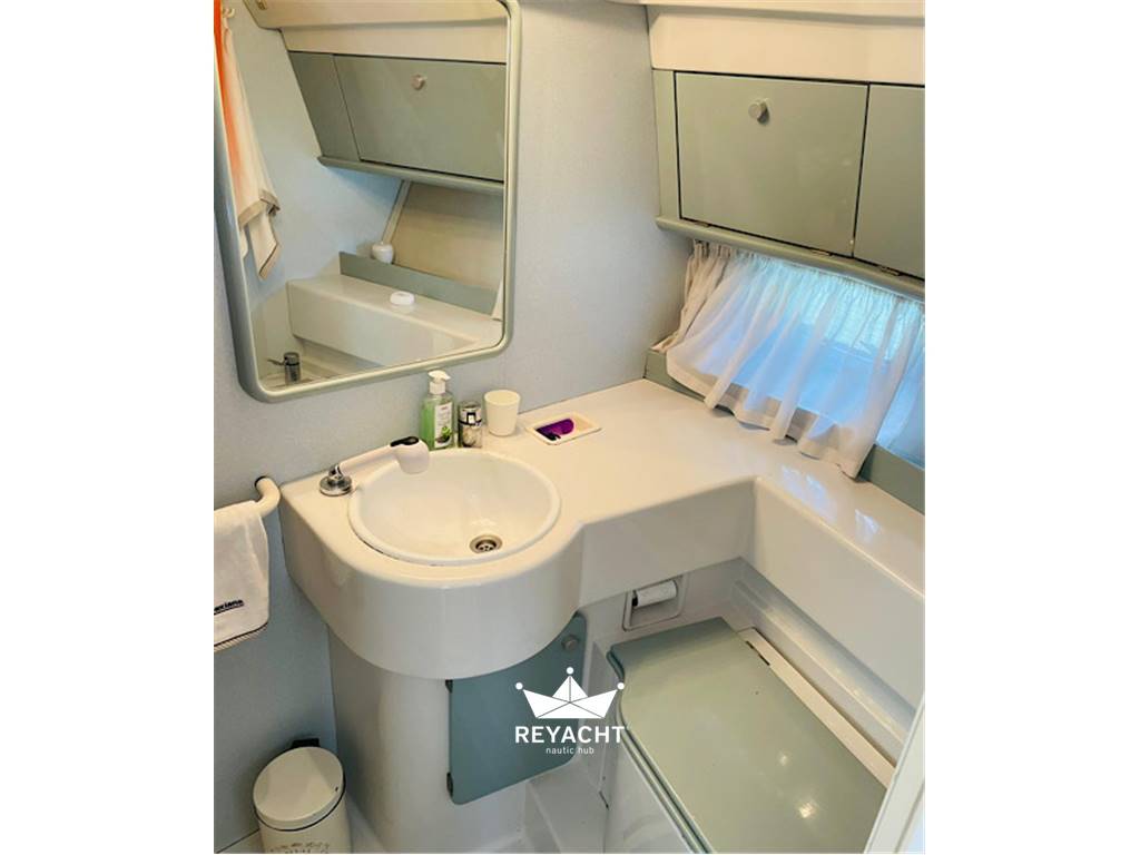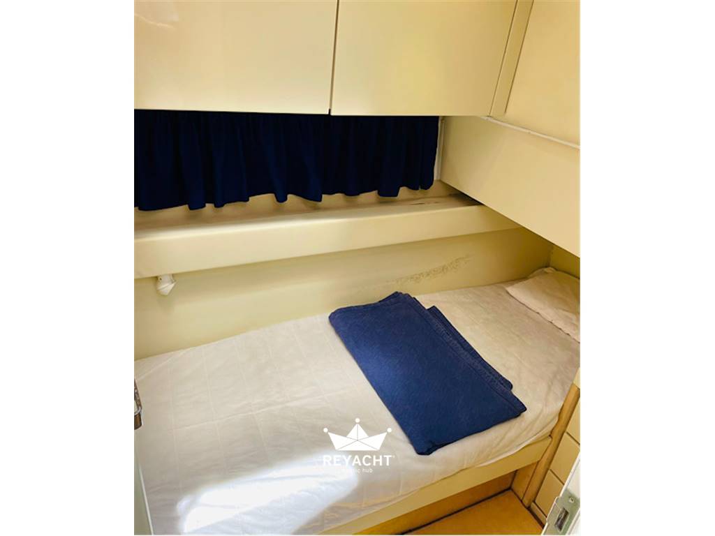 Descrizione interni: grande porta a vetro sul pozzetto con Dinette con divano a L 6 posti con tavolo in radica abbassabile per fare un’altra matrimoniale, la cucina verso il pozzetto come soluzione geniale per cucinare al fresco e comoda per gli ospiti in pozzetto,posto ergonomico di guida con consolle in radica e strumentazione elettronica del 2021,scendendo nella zona notte una cabina singola di grandi dimensioni contrapposta ad una doppia con terzo letto estraibile a castello, bagno di pertineza con ampio calpestio e cabina armatoriale con letto matrimoniale con armadi specchi calpestio e bagno di grandi dimensioni.