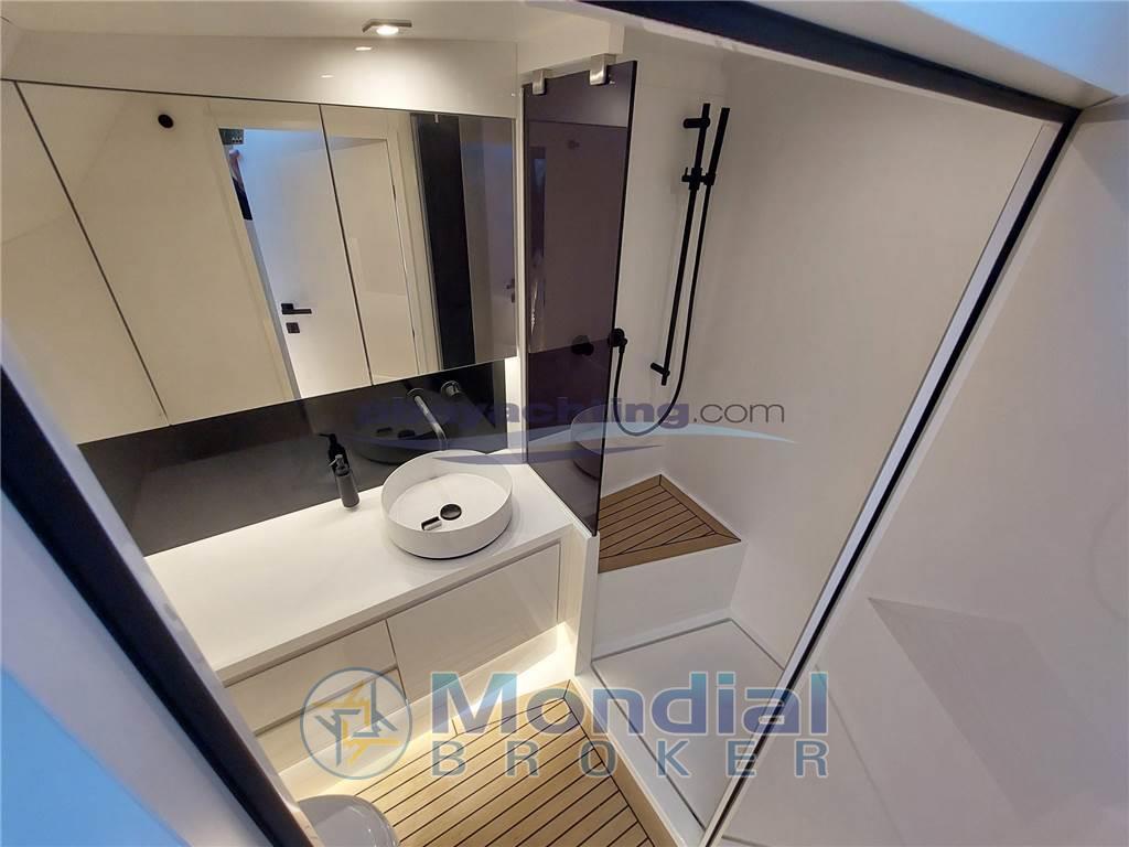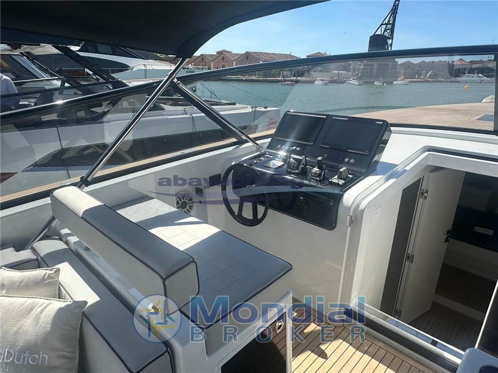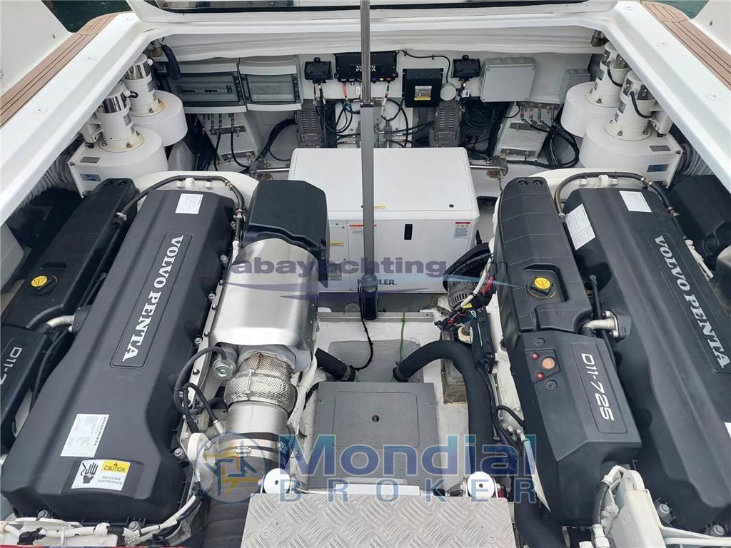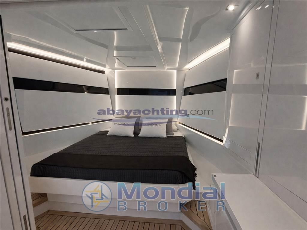 Van Dutch 48 con motorizzazione maggiorata Volvo Penta D11 da 725hp in linea d'asse con joystick di manovra. Full optional: generatore da 8.5 kw, elica di poppa + elica di prua Side Power, piattaforma di poppa idraulica con sistema sali-scendi, climatizzatore reversibile, bimini pieghevole e richiudibile elettricamente, doppio frigorifero esterno + ice-maker, coperta in teak sintetico Flexiteek, elettronica Garmin con 2 schermi touch da 16".