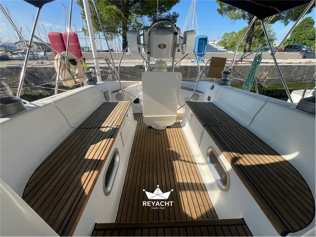 Teak ponte/pozzetto, bimini-top, sprayhood, gruette, ponte teak, CD/radio/TV, passerella, scaletta bagno.