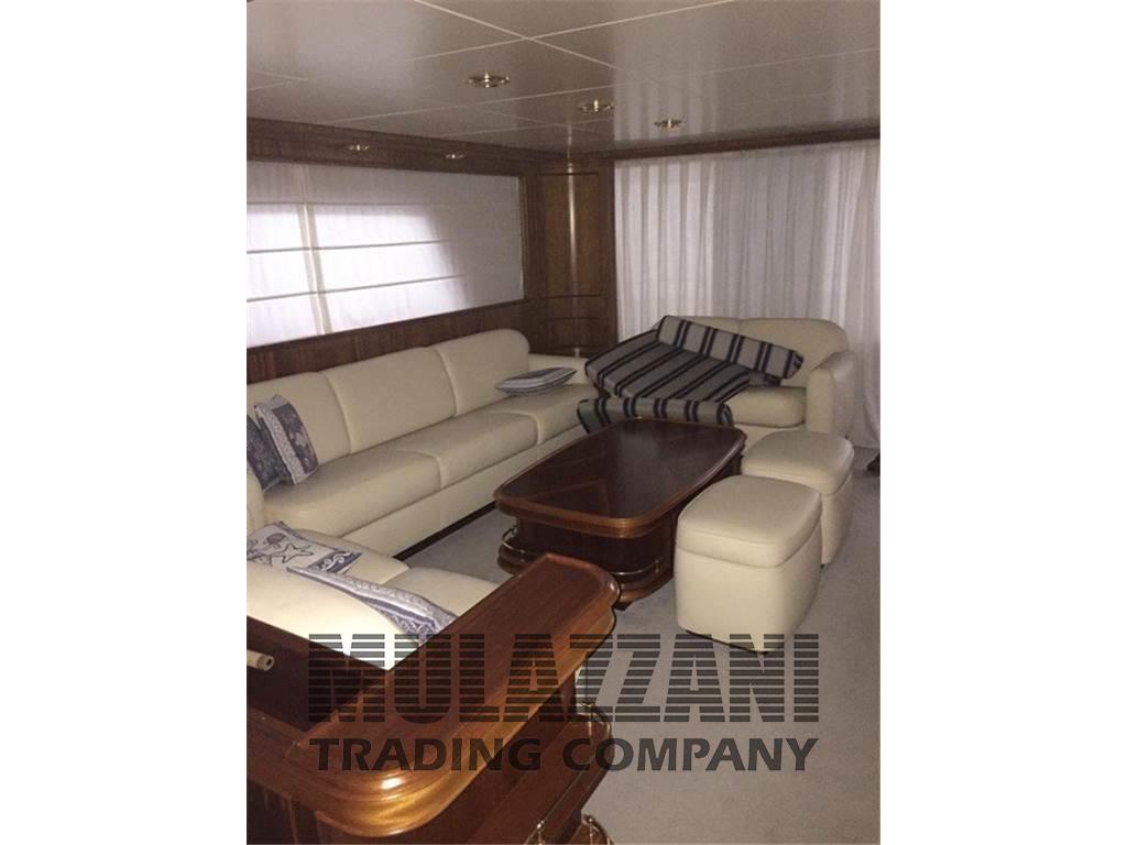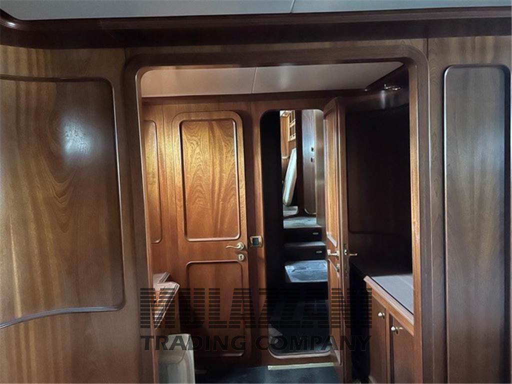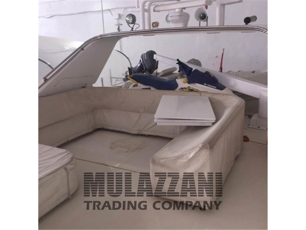 Allarme motore, Allarme sentina, Ancora, Angolo barra, Autoclave, Autogonfiabile, Batterie, Bussola, Camminamenti laterali in teak, Caricabatterie, Contamiglia, Doccia esterna, Doppia timoneria, Ecoscandaglio, Elica di prua - bow thruster, Faro orientabile, Fax, Flap idraulici (N°2), GPS, Gruette, Impianto antincendio, Interfono, Lavaggio catena, Passerella (IDRAULICA TELESCOPICA), Piattaforma, Pilota automatico, Plotter, Pompa di sentina elettrica, Pompa di sentina manuale, Porta ingresso, Pozzetto Teak, Presa 220V banchina, Presa acqua banchina, Radar, Raddrizzatore, Radio VHF, Rollbar, Salpa Ancore Elettrico, Scaletta da bagno, SSB, Tavolo pozzetto, Tender, Tromba, Winch tonneggio di prua