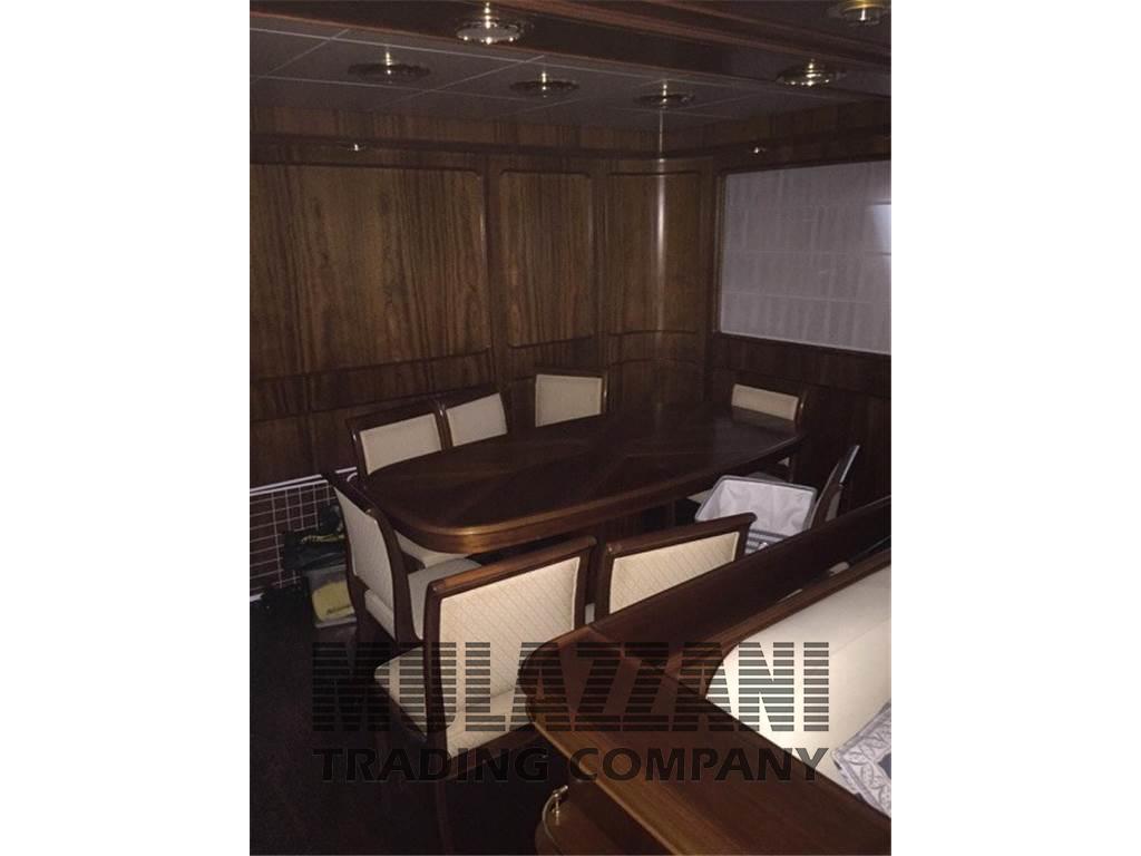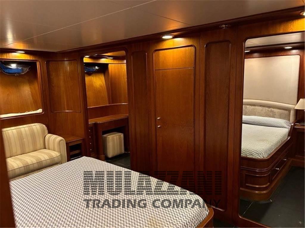 2 Matrimoniale italiana, 1 Doppia in piano, 1 singola, 2 Cabina equipaggio, 4 Toilette con doccia, 1 Cucina, 1 Salone, 1 Toilette Equipaggio