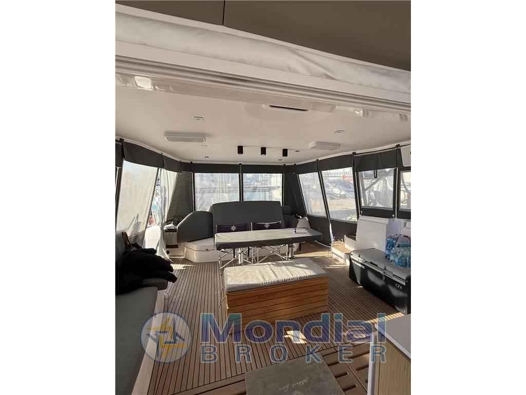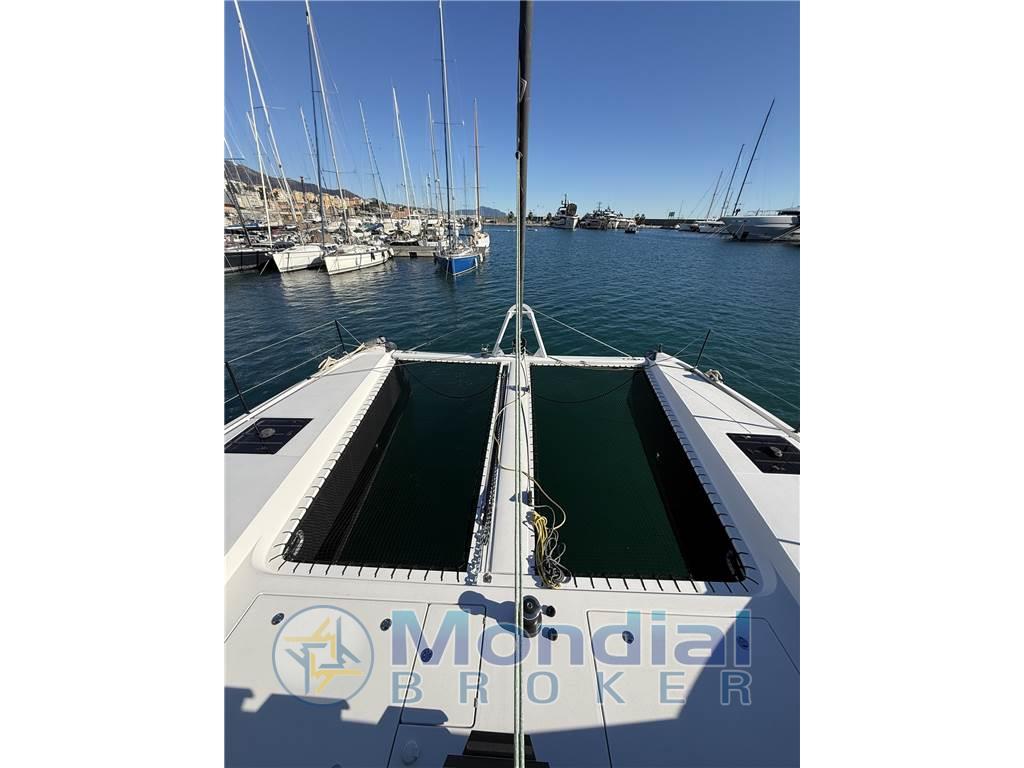 Allarme motore, Allarme sentina, Alternatore, Ancora (35 kg con 60 mt di catena e 50 mt di cima), Camminamenti laterali in teak, Cavo corrente di banchina, Colorazione speciale, Corrimano, Corrimano di sicurezza, Doccia esterna, Doppia timoneria, Gruette per tender, Luci di cortesia, Luci subacquee, Monitor batteria, Motore fuoribordo per tender, Pannelli Solari (Su entrambi gli scafi), Parabordi, Passerella (mobile), Pompa di sentina automatica, Pompa di sentina elettrica, Pompa di sentina manuale, Ponte in teak, Porta ingresso, Pozzetto Teak, Presa 220V banchina, Presa acqua banchina, Salpa Ancore Elettrico, Tavolo pozzetto, Tavolo Salone Abbattibile, Tender, Tromba, Winch Elettrico, Winch tonneggio di poppa.
