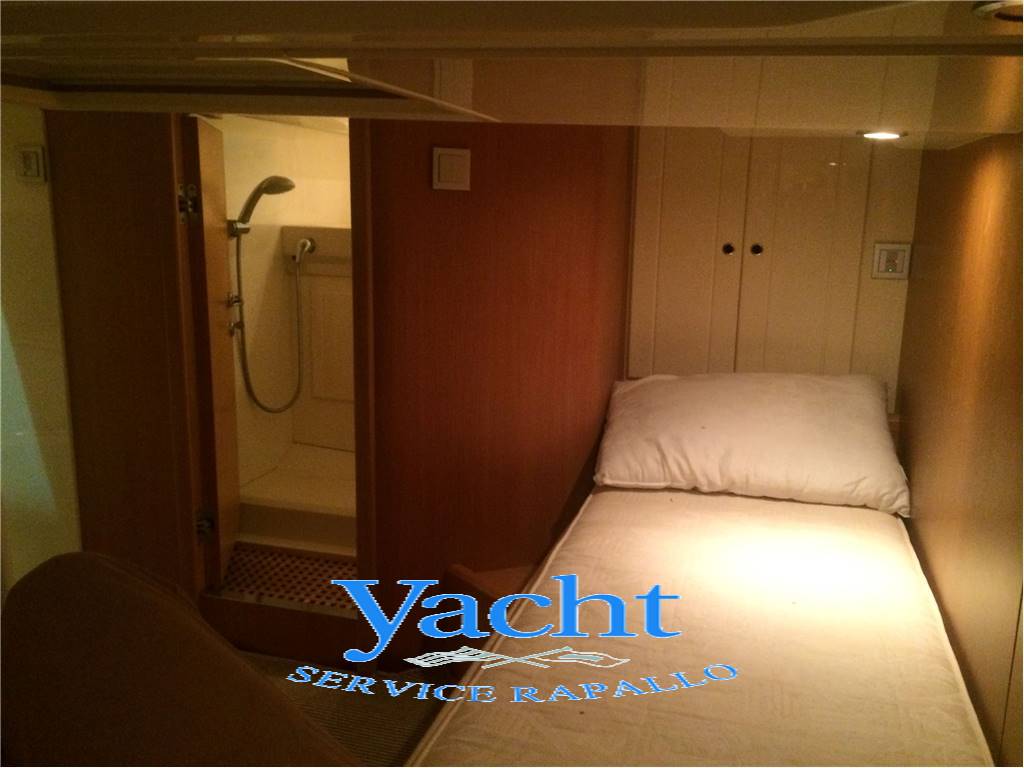 Alla suite armatoriale di prua si aggiunge una cabina doppia a centro barca con annesso bagno privato.