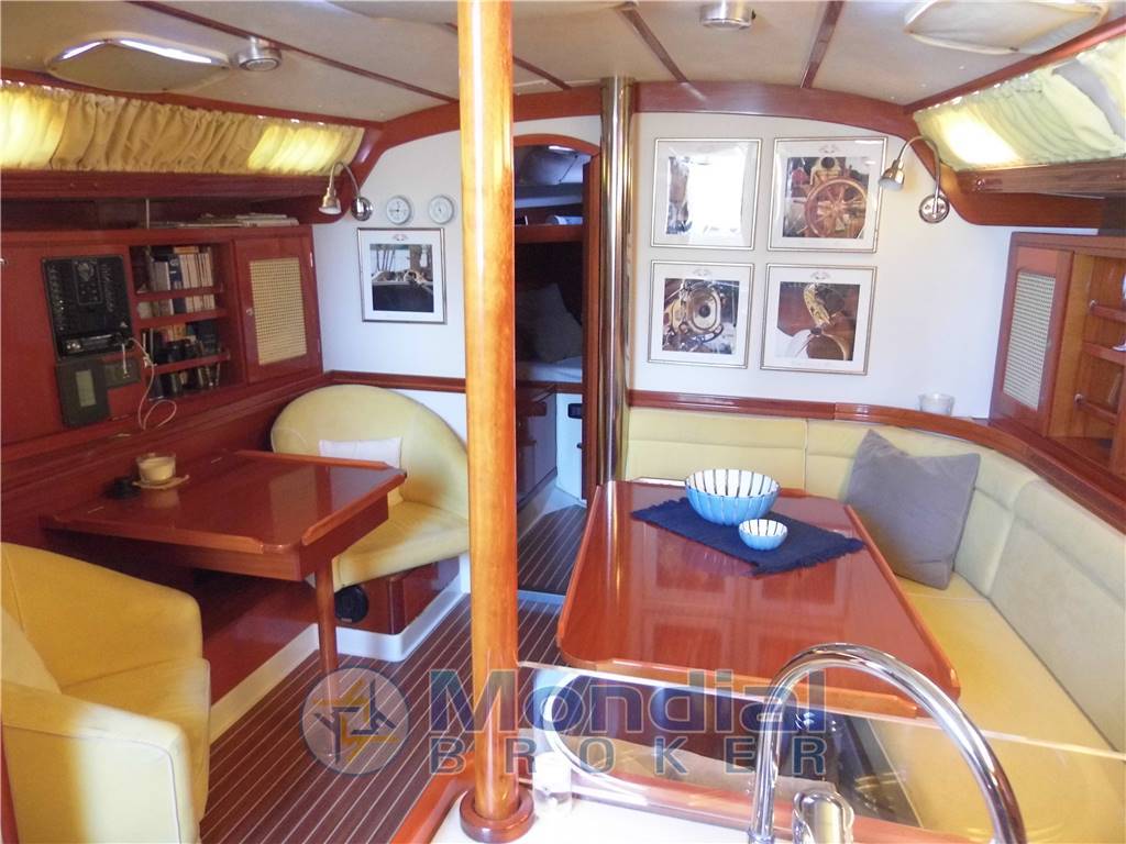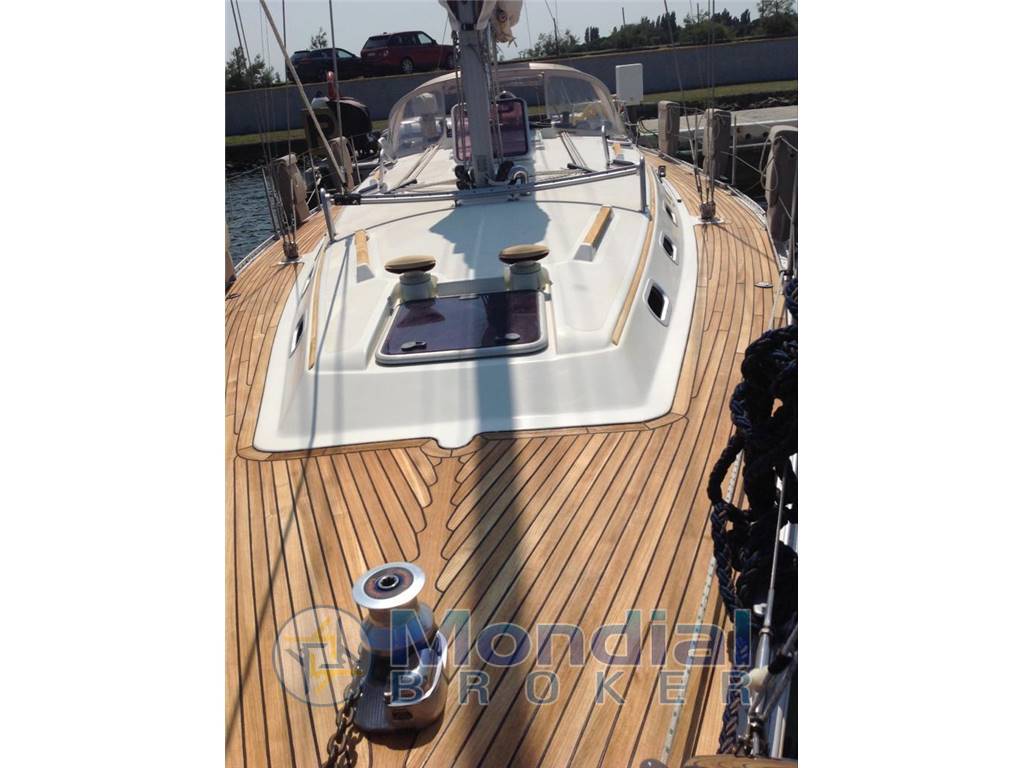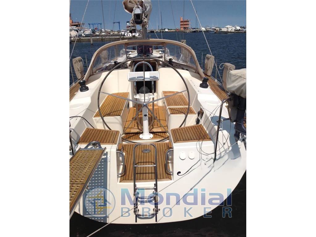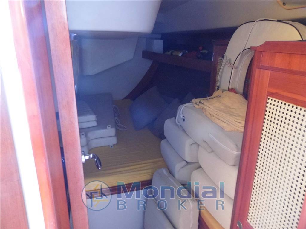 Albero con due ordini di crocette con sartiame spiroidale, con carrelli Harken per randa steccata, boma con vang rigido, attrezzatura per gennaker, rotaia a prua per fiocco autovirante, musone per ancora con ancora Delta da 13kg., Timoneria a ruota con consolle porta strumenti, tavolo pozzetto grande che funge anche da pagliolo, capottina, telo copri pozzetto nuovo che si attacca sotto al boma e quando è aperto sembra un bimini, passerella manuale apribile, pulpiti di puppa e di prua, vele Norsh Sail ed esattamnete randa steccata , gennaker con calza e fiocco autovirante ( da rifare). a poppa doccetta con acqua calda e fredda.
