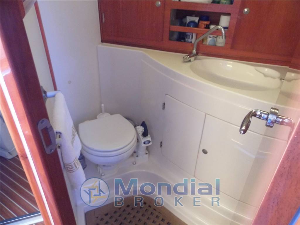 Barca con interni in legno di ciliegio con inserti di paglia di Vienna. Cabina di prua a V completa di ripostigli e armadio, bagno di prua completo di wc elettrico, lavandino ,stipetti e possibilità di fare la doccia, Ampia dinette con tavolo su piedistallo attrezzato con cassetti, divano a C con due di fronte tavolo da carteggio con due poltrone sui due lati sulle pareti di tutta la dinette ripostigli con aperture con inserti di paglia di Vienna, quadro elettrico con strumenti, cucina a L allungata con doppio frigorifero uno a pozzetto e uno con apertura frontale, forno con fornello a tre fuochi, doppio lavello con acqua calda e fredda ripostigli vari, a seguire ampio ripostiglio dove è ubicato il generatore, sul lato opposto secondo bagno con wc manuale, lavandino, ripostigli e possibilità di fare il bagno, cabina di poppa molto accogliente con armadio e ripostigli.