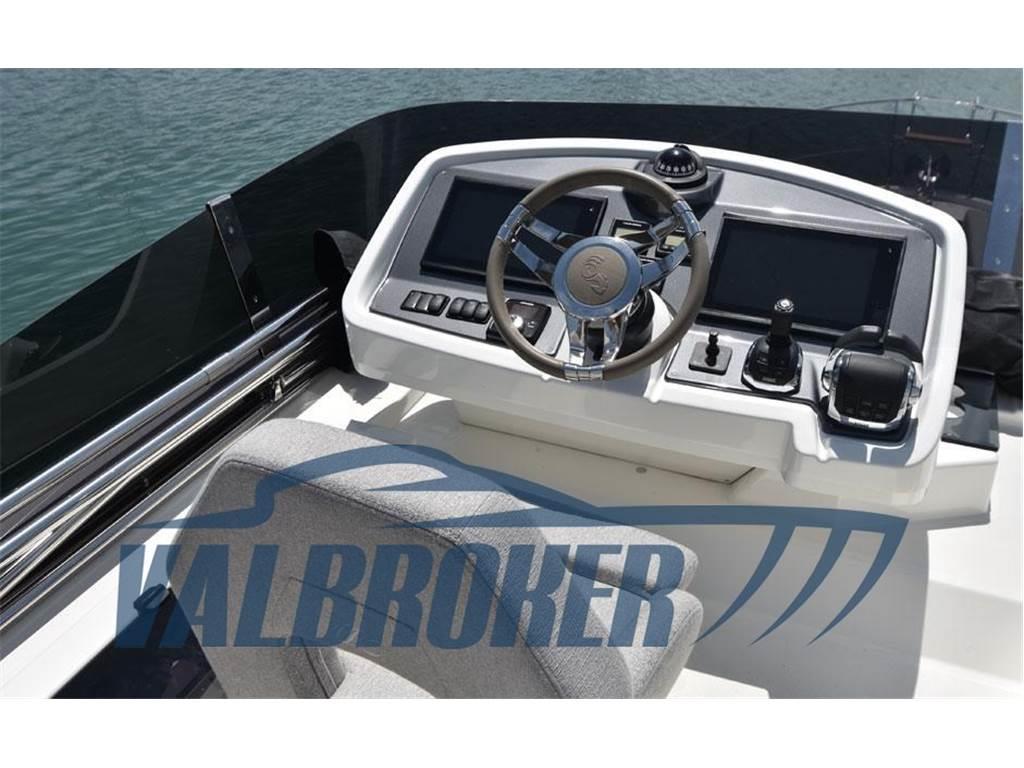 AIS (Garmin), 8 Batterie, Caricabatterie, Colorazione speciale (scafo grigio antracite), Ecoscandaglio, Elica di prua - bow thruster, GPS (Garmin), Joystick (suppl. in pozzetto), Luci subacquee, Passerella (Opacmare, idraulica), Piattaforma (idraulica con telecomando), Pilota automatico, Presa acqua banchina, Radar (Garmin), Radio VHF (Garmin), Rollbar (grigio antracite), Scaletta da bagno, Sedile Copilota, Stabilizzatori (Seakeeper 6), Tavolo pozzetto (elettrico)