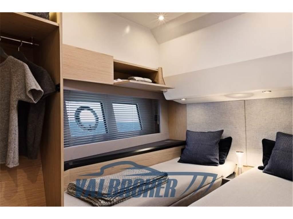 Altoparlanti (Bose), Antenna Satellitare TV, Aria condizionata (48000 btu), BBQ/ Grill, Bimini (grigio fly, a prua con pali in carbonio), Boiler, Controllo Domotica, Copripozzetto, Frigorifero esterno, Frigorifero interno, Inverter, Lavasciuga, Lavastoviglie, Pavimento interno in legno, 6 Telecamera, Tenda Elettrica (pozzetto), 2 TV, 2 WC marino elettrico, Zanzariere, Finestre apribili elettronicamente in salone,Interceptor Zipwake,Supporto tender a scomparsa in piattaforma,pagiolato in teak sintetico, nome di poppa illuminato, DOME verniciati grigio antracite