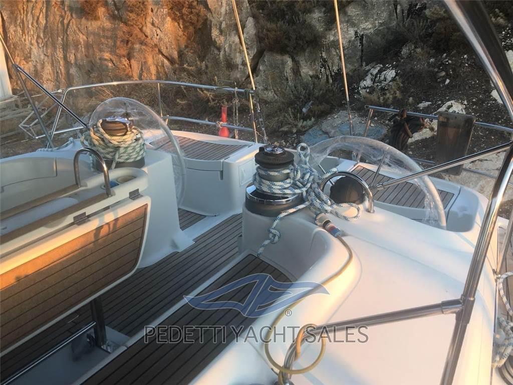 La vela è dotata di randa e genoa in Dacron, avvolgibili e facili da gestire con winch elettrici. Il pozzetto doppio offre comfort per l’equipaggio e gli ospiti, con ampio tavolo e sedute protette, oltre a dotazioni essenziali come bimini/spray good, dodger, verricello elettrico e scala da bagno.