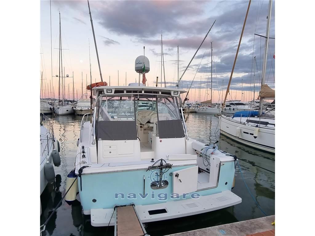 Antenna Satellitare TV, Boiler, Cucina, Cuscineria completa, Frigorifero esterno, Frigorifero interno, Impianto TV, Portacanne, Prese interne 12v, Prese interne 220v, Radio AM/FM, Stereo, Telo copriconsolle, Tendalino, Trolling Valve (2024), 2 Vasca del vivo (una fissa e una amovibile), Vasca pescato, WC marino elettrico, Bagni: 1