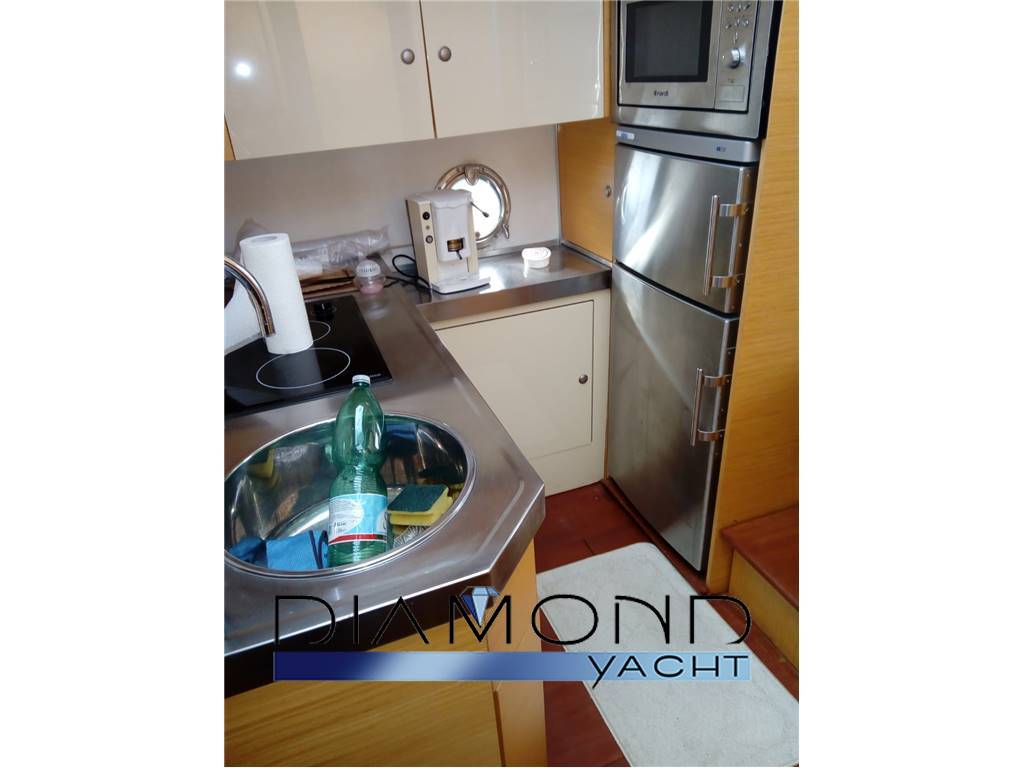 PLANCIA E POZZETTO IN TEAK, PORTAVETRI PER ACCEDERE ALL'INTERNO, PRENDISOLE DI PRUA, FLY CON TAVOLO E DIVANETTO E POSTAZIONE GUIDA.  IN DINETTE TROVIAMO DIVANO E TAVOLO, POSTAZIONE DI GUIDA, CUCINA CON PIANO COTTURA AD INDUZIONE, LAVELLO, FRIGO E FREEZER, LAVASTOVIGLIE, FORNO MICROONDE, CABINA ARMATORIALE DI PRUA, CABINA OSPITI E BAGNO.