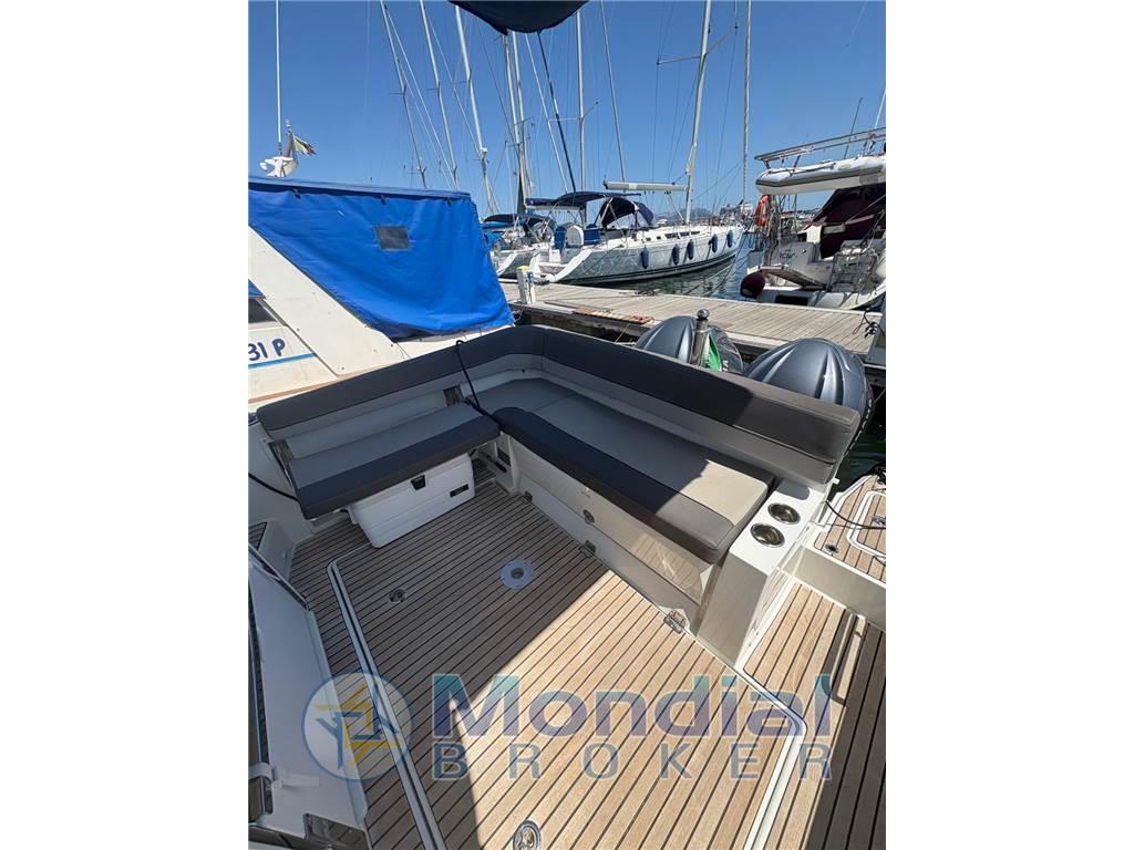 GPS/eco cartografico, elica di prua, verricello elettrico, flaps elettrici, doccetta in pozzetto, frigorifero interno, frigorifero esterno, impianto acqua dolce, WC marino elettrico, presa 220V da banchina, cuscineria completa, prendisole a prua, luci di cortesia. Panche abbattibili Allarme motore, Allarme sentina, Ancora, Autoclave, Camminamenti laterali in teak, Caricabatterie, Doccia esterna, Elica di prua, Flap elettrici, Hard Top, Pompa di sentina automatica, Salpa ancora elettrico, T-Top, Winch elettrico Fornello, Frigorifero esterno, Frigorifero interno Dotazioni di sicurezza entro 12 miglia Prese interne 12V, Prese interne 220V, Wc marino manuale Radio AM/FM Radio VHF Cuscineria completa