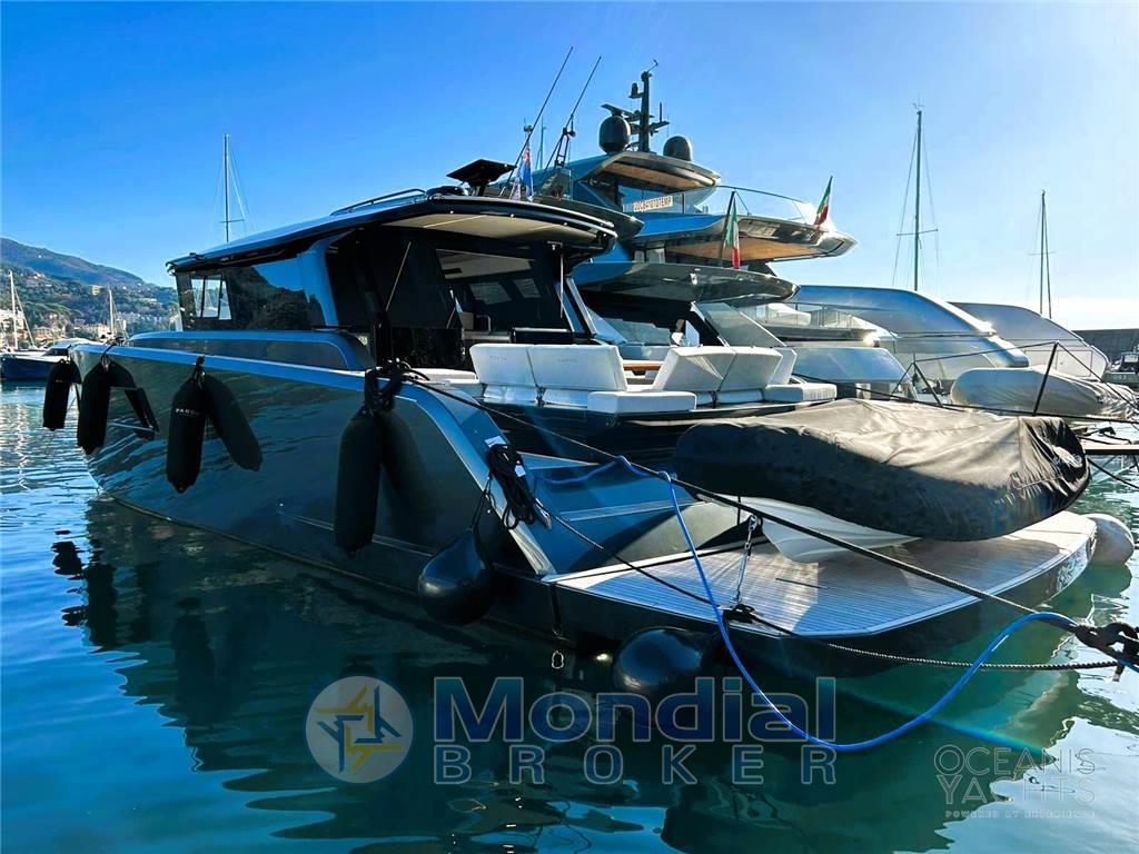 AIS, Allarme fumo/gas, Allarme motore, Allarme sentina, Alternatore, Ancora, Angolo barra, Auto Dynamic Trim Interceptor, Autoclave, Batterie, Bussola, Caricabatterie, Cavo corrente di banchina, Contamiglia, Doccia esterna, Ecoscandaglio, Elica di prua - bow thruster, Flap elettrici, GPS, Hard top, Joystick, Log, Luci di cortesia, 8 Parabordi, Passerella (idraulica a scomparsa), Piattaforma (idraulica affondabile), Pilota automatico, 2 Plotter, Pompa di sentina automatica, Pompa di sentina elettrica, Pompa di sentina manuale, Ponte in teak, Porta ingresso, Pozzetto Teak, Presa 220V banchina, Radar, Radio VHF, Salpa Ancore Elettrico, Scaletta da bagno, Stabilizzatori (giroscopico), Tavolo pozzetto (elettrio), Tromba