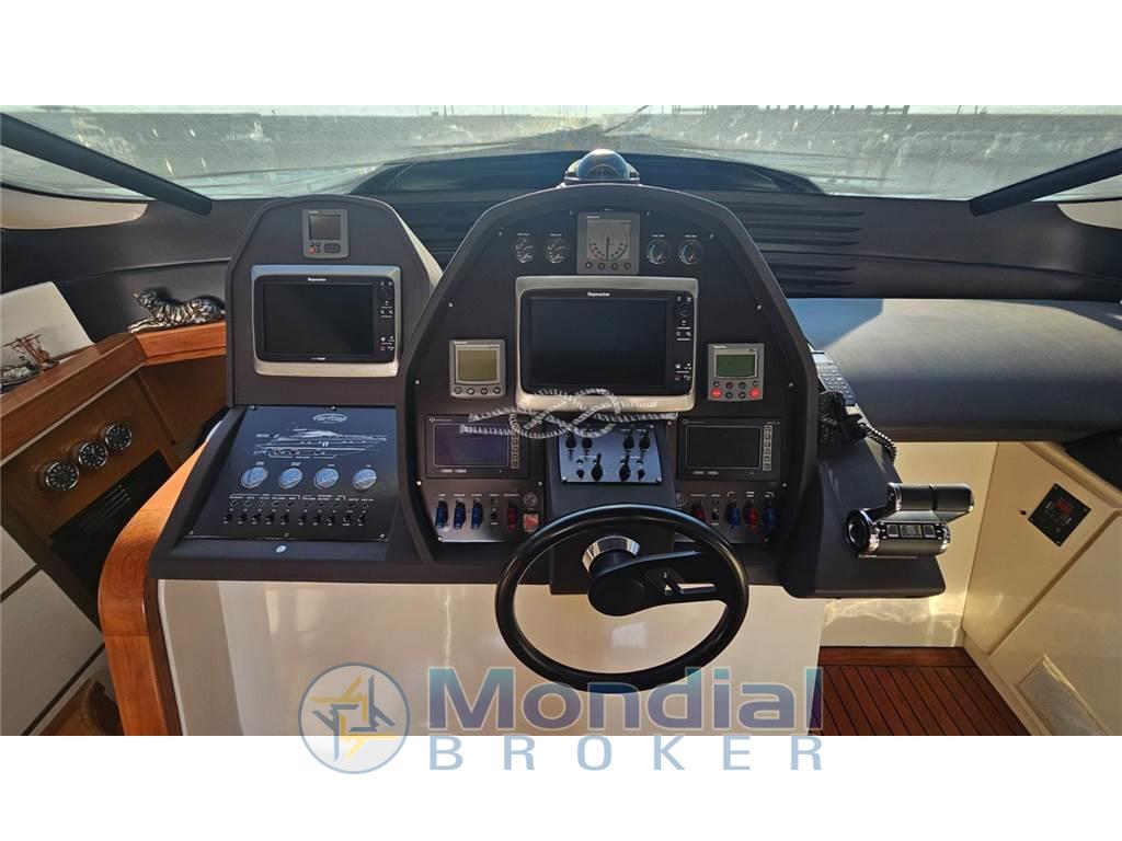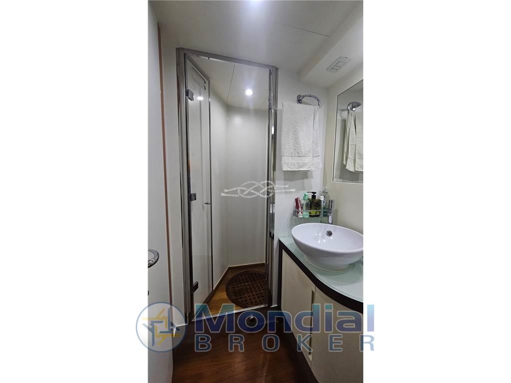 Aria condizionata Condaria con due compressori supplementari per il salone superiore - gruppo elettrogeno Kohler 20 kW (600 ore m.) - antenna TV SAT - TV LCD in tutti gli ambienti - telecamere poppa e sala motori (x 4) - dissalatore Idromar - sistema audio Bose - elica di prua - elica di poppa - garage tender - divano di poppa trasformabile in prendisole - passarella elettro-idraulica a scomparsa - doppio verricello di tonneggio a poppa - mobile bar nel pozzetto con lavello - piano cottura induzione 4 fuochi - frigo - freezer - frigo a pozzetto nella dinette - microonde - lavastoviglie - tende di oscuramento elettriche in tutti gli ambienti - divani e poltrona di comando in pelle - due caricabatterie servizi Mastervolt - due caricabatterie motori Mastervolt - due inverter Mastervolt - due autoclave acqua dolce - pompa di rispetto acque nere e grigie - centralina regolazione afflusso e potenza aria in sala motori - dispositivo di emergenza per i trim - due prese corrente di terra - presa diretta acqua - luci subacquee - scritta di poppa in acciaio retroilluminata - luci di cortesia camminamenti laterali - telefono SAT.