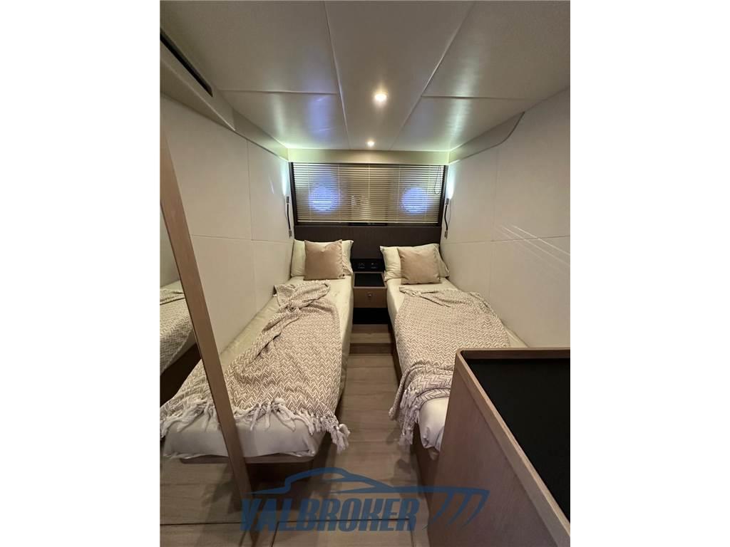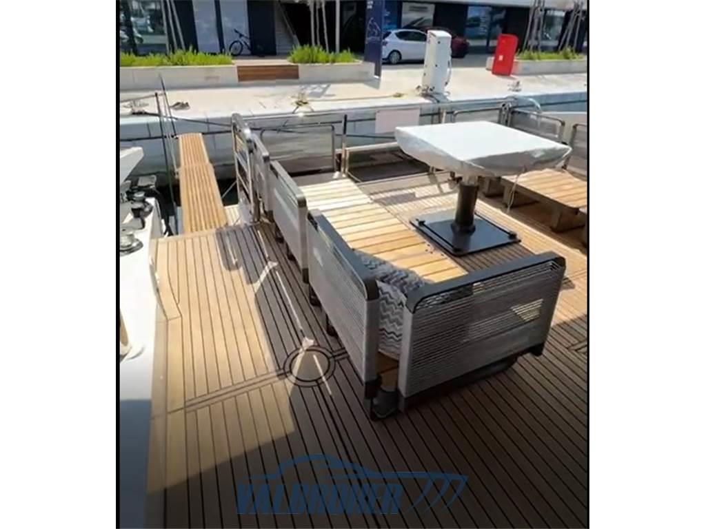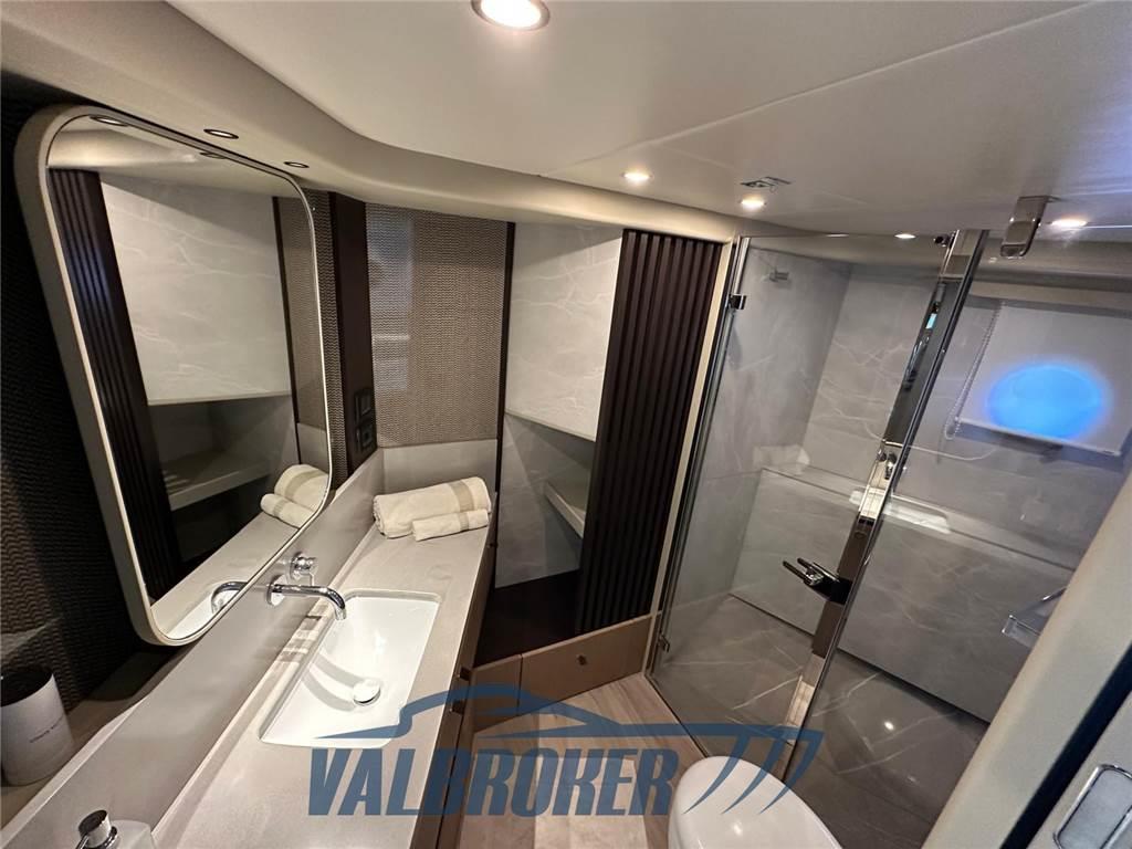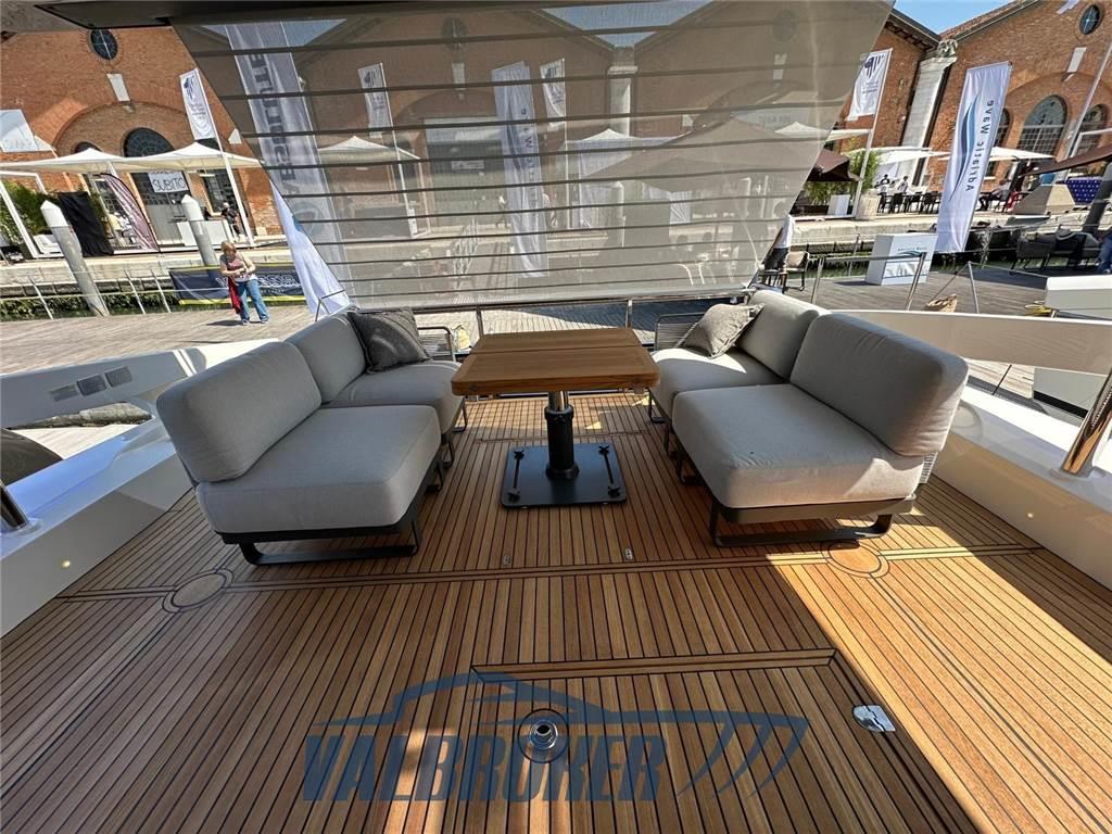 AIS, Ancora (inox Ultra 45 kg), Autoclave, Batterie, Caricabatterie, 3 Display, 2 Doccia esterna (fly e prua), Elica di prua - bow thruster (doppio controllo), GPS, Hard top (vetroresina con pannelli fotovoltaici), Joystick (Joystick), Luci di cortesia, Luci subacquee, Pannelli Solari, Passerella (elettro-idraulica a scomparsa), Piattaforma (idraulica 400kg teak massello), Porta laterale, Presa 220V banchina, Presa acqua banchina, Salpa Ancore Elettrico, Scaletta da bagno (integrata nella piattaforma), Sedile Copilota (sul fly, fisso con copertura), Tavolo pozzetto (teak con gambe in alluminio regolabile + copertura), Tavolo Salone Abbattibile, Winch tonneggio di poppa (con pedale e illuminazione)