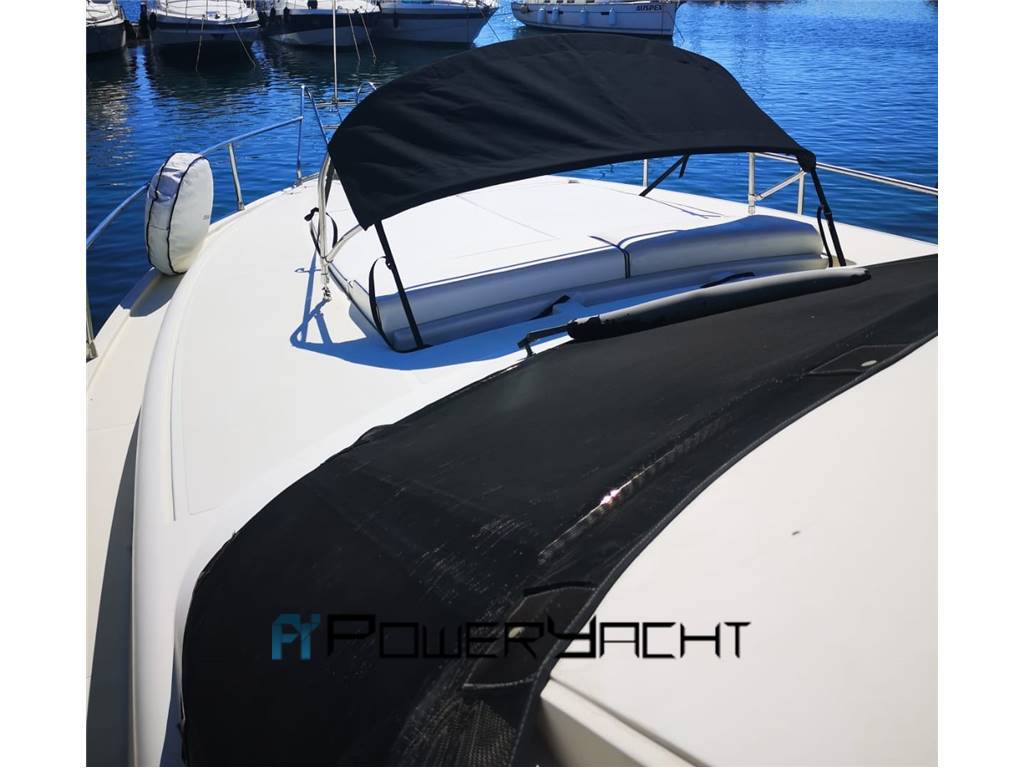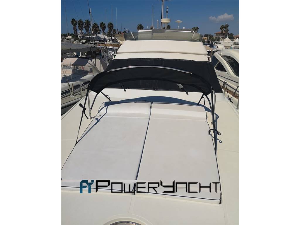 Esterni con pozzetto poppiero con sedute laterali, zona prendisole a prua, e fly con timoneria a sinistra, più seduta passeggero a dritta.