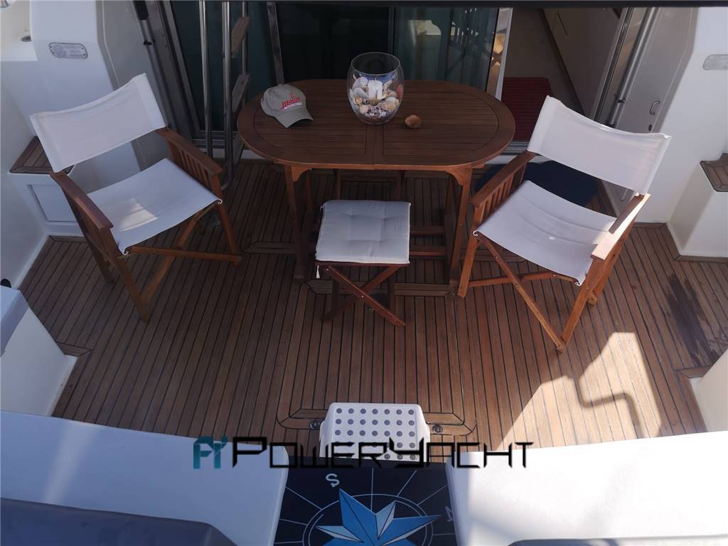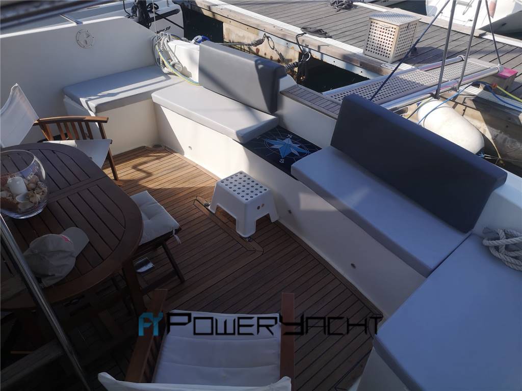 Salpa ancora elettrico, ancora con catena, cuscini pozzetto, cuscini fly, cuscino prendisole prua, tendalino prendisole prua, tendalino fly, copertura invernale pozzetto, copertura parasole pozzetto, tavolo pozzetto in legno, pozzetto in teak, dotazioni di sicurezza come per RINA