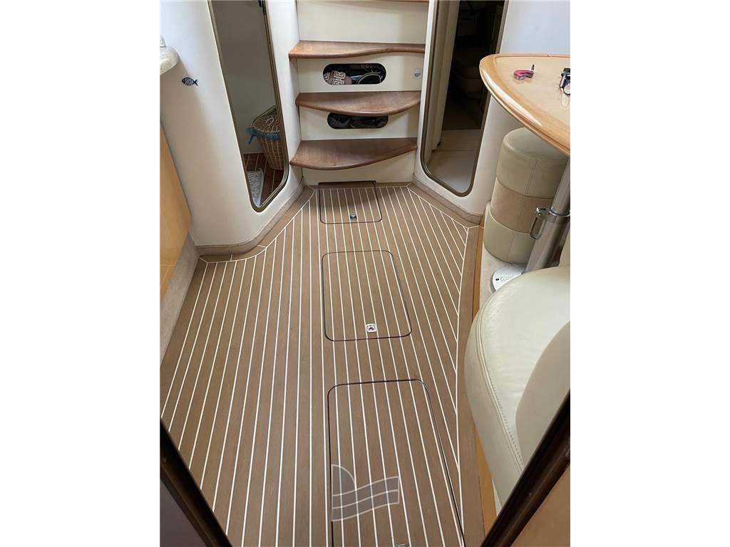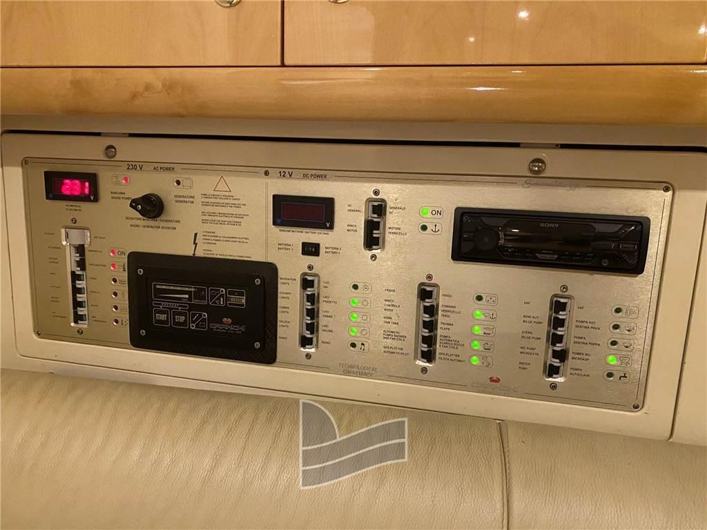 Allarme motore, Ancora, Doccia esterna, Elica di prua - bow thruster, 2 Flap idraulici, Impianto antincendio, Lavandino nel Pozzetto, Passerella (Idraulica), Piattaforma (di poppa in teak), Pompa di sentina automatica, Pompa di sentina manuale, Porta ingresso, Presa 220V banchina, Rollbar, Salpa Ancore Elettrico, Scaletta da bagno, Tavolo pozzetto, Tromba.
