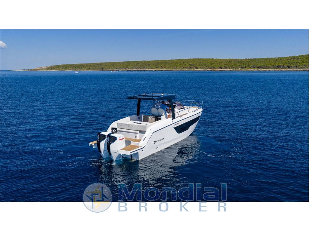 Oltre a questa configurazione si può avere anche la versione con una o entrambe le terrazze laterali apribili, che sono uno dei punti forti di questa barca, il divanetto a L oppure il front to front e il divanetto a U completo. In questa barca ogni scelta è la vostra, hard top in acciaio nero o possibilità di scegliere tra roll-bar o tendalino.